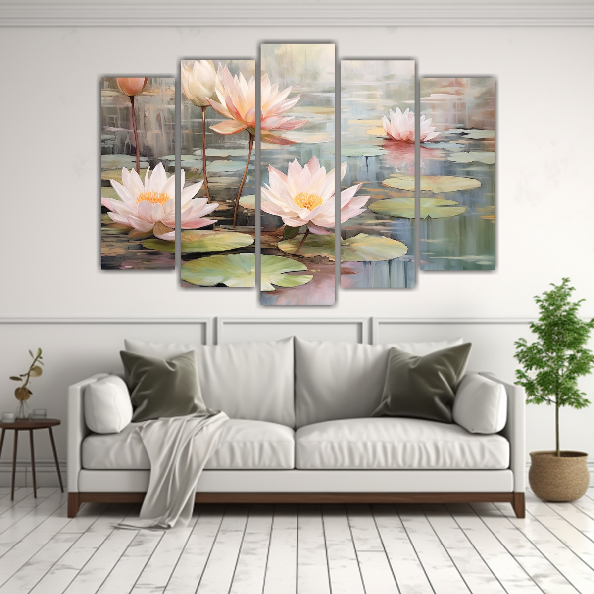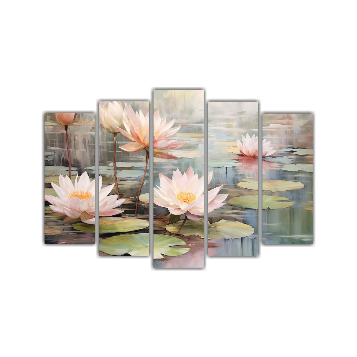 Para realzar la belleza y elegancia de estos cuadros de flores de lirio acuático, te recomendamos colocarlos en una pared de color neutro, como blanco o gris claro, para que resalten y se conviertan en el foco principal de la habitación Combínalos con muebles de madera clara y elementos decorativos en tonos suaves para crear un ambiente armonioso y relajante