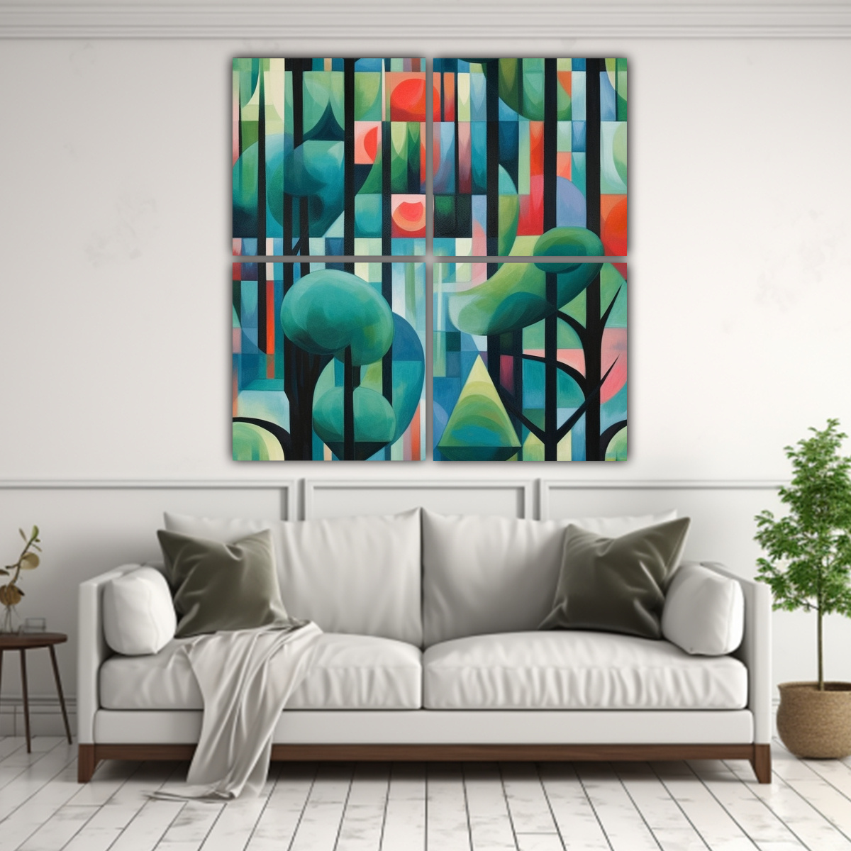 Cuadros Decorativos De Imagen Multicolor Para Siempre Enloquecer: Imagina Un Bosque De Imponentes Pinturas Geométricas.