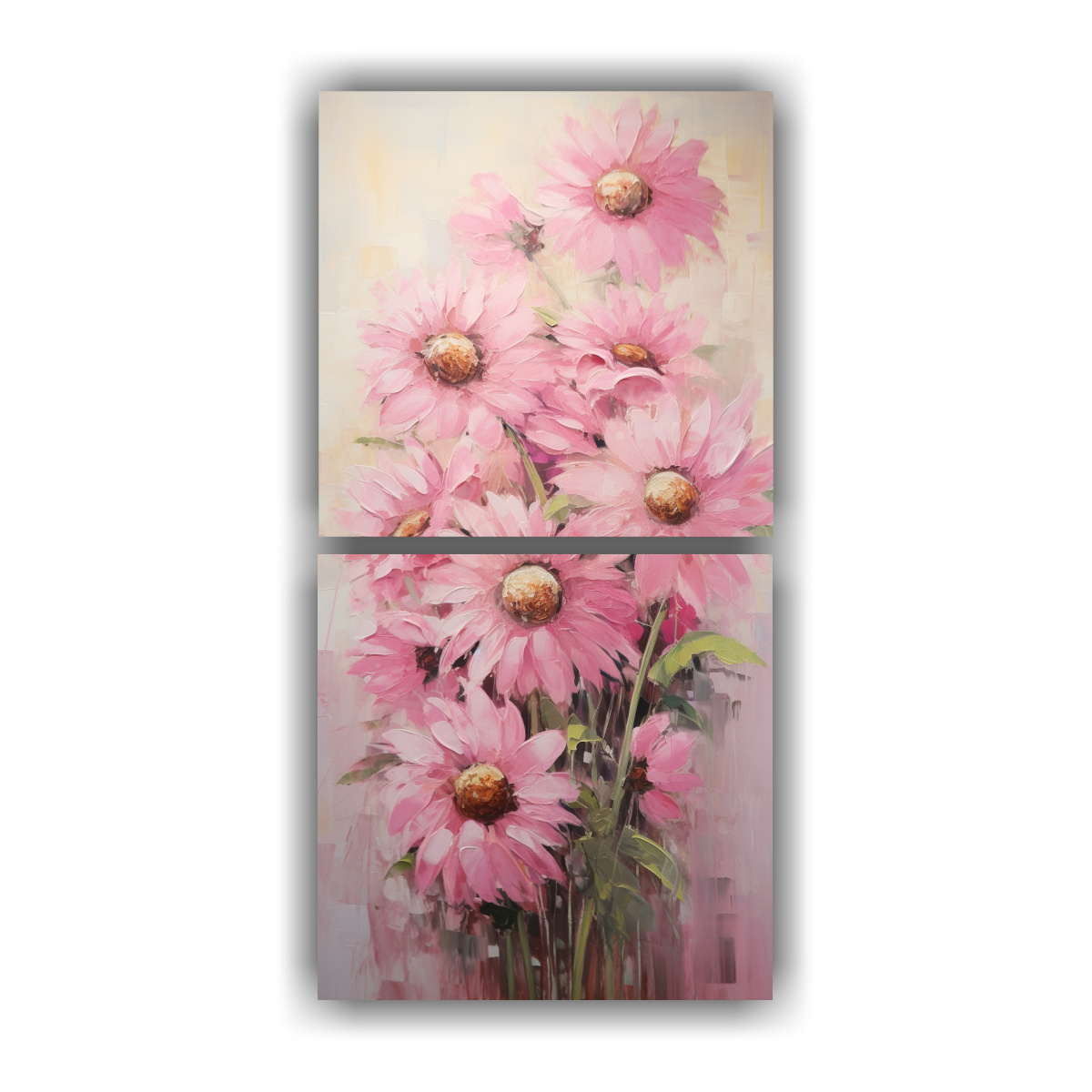 Estos cuadros decorativos con dibujo de girasoles rosas se verán espectaculares en tu sala de estar o en tu estudio Combínalos con tonos azul marino grisáceo, lila, gris, dorado y beige para crear un ambiente cálido y acogedor Coloca los cuadros en una pared blanca para resaltar su belleza y añade cojines en tonos similares para completar la decoración