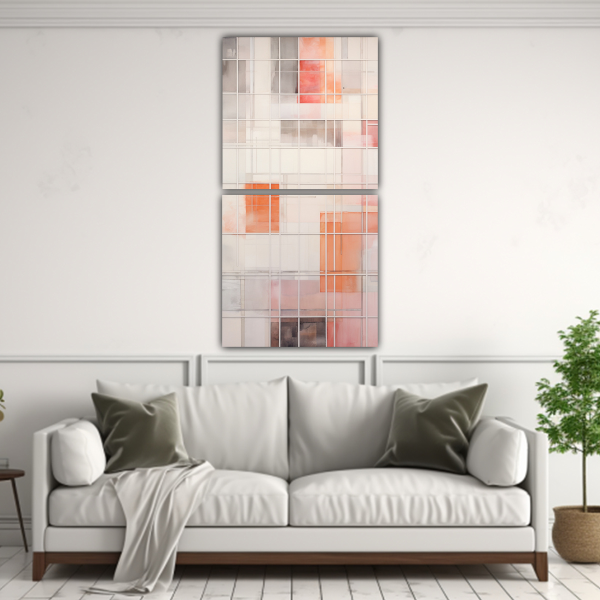 Cuadros Decorativos De Líneas De Visión En Gris, Rosa, Naranja Y Blanco