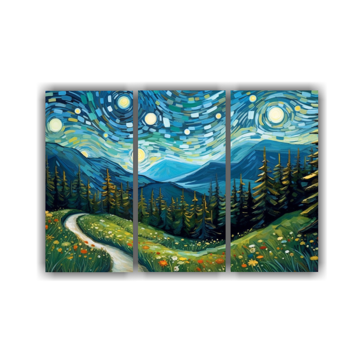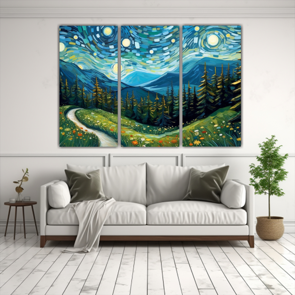 Añade un toque vanguardista a tu hogar con estas tres piezas de arte de pared inspiradas en la famosa Starry Night Con entregas rápidas y gratuitas en Santiago, y envíos express a regiones, podrás disfrutar de tus cuadros en poco tiempo ¡Renueva tu espacio con nuestra mejor calidad y diseños exclusivos!