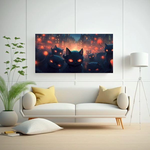 Renueva tus espacios con el arte de pared en tela Canvas de gatos negros con ojos brillantes en el centro Diseños exclusivos, entregas rápidas y gratuitas en Santiago Envíos express a regiones ¡Decora con estilo!