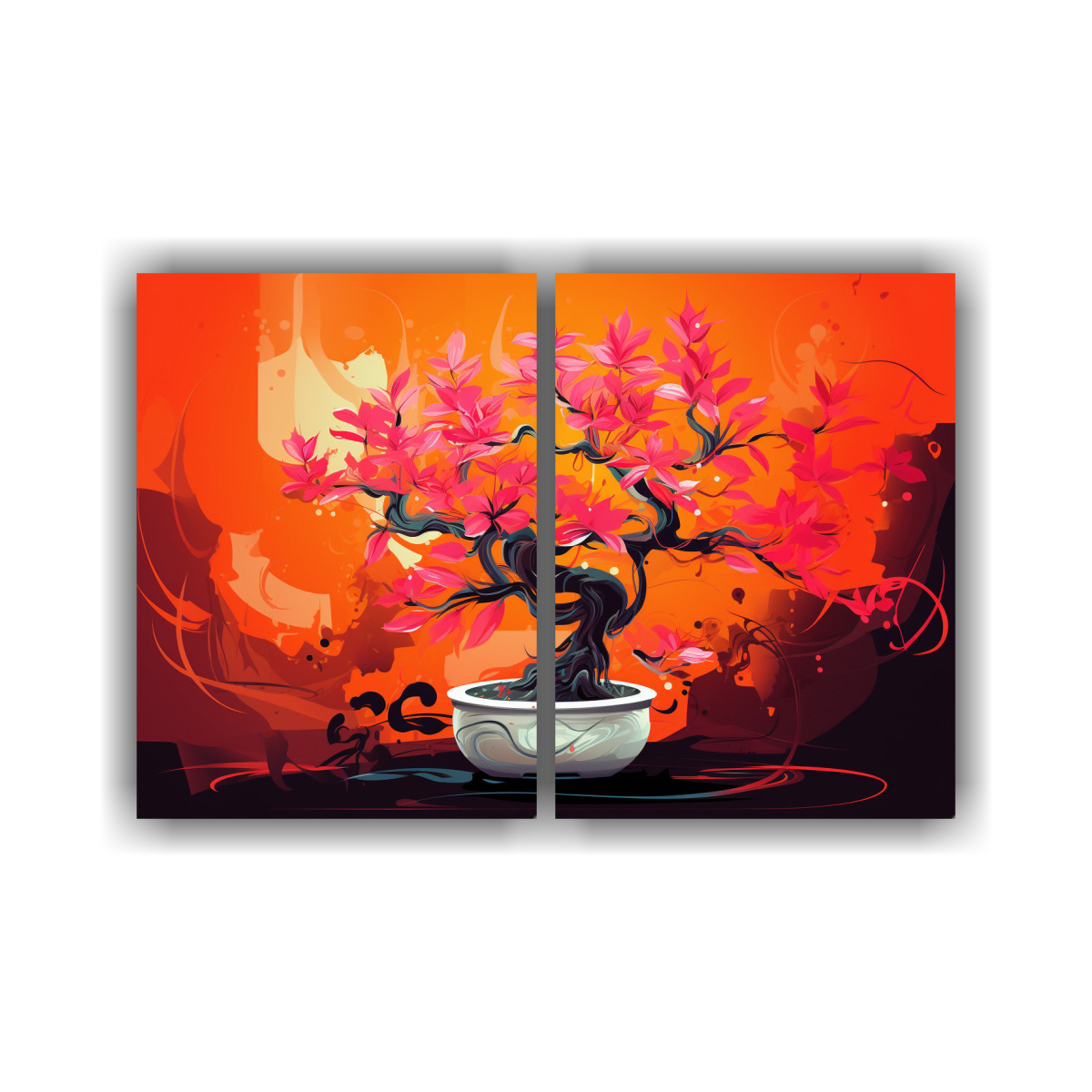 Cuadros Decorativos De Tema Fucsia Y Naranja En Neonoir.