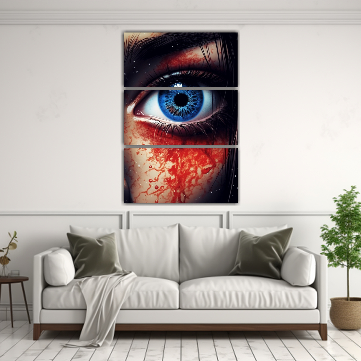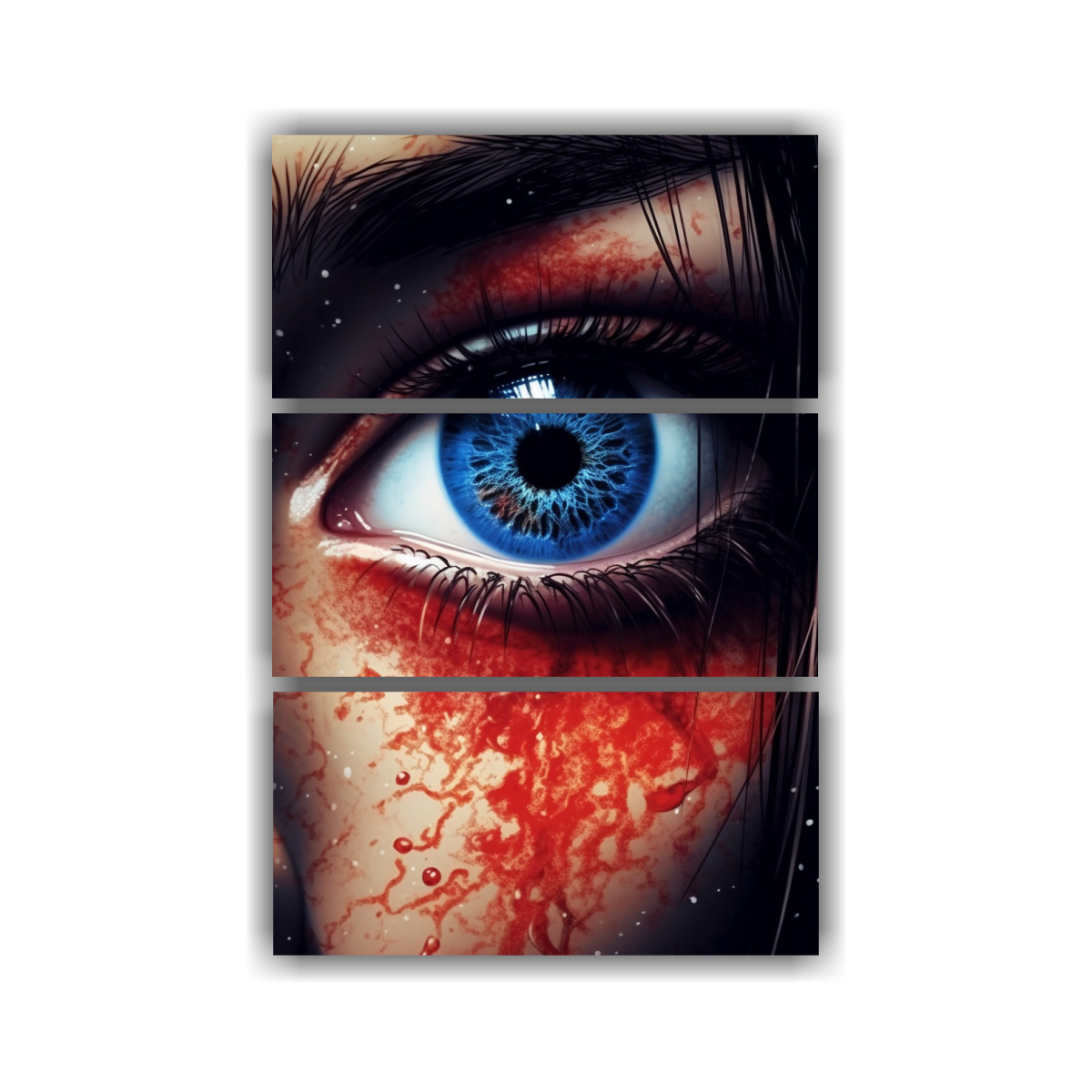 DecoCuadros tiene a la venta cuadros decorativos diseño universo tonos azul ojos carmesí, impresos en tela de alta calidad con bastidores de madera Diseños exclusivos y entrega rápida y gratis en Santiago