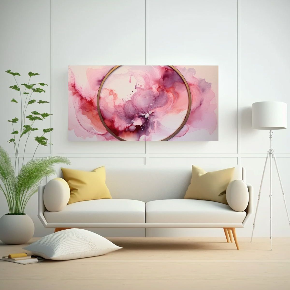 Cuadros Decorativos Elegantes Con Elegantes Pinceladas Circulares En Tinta Alcohol Rosada