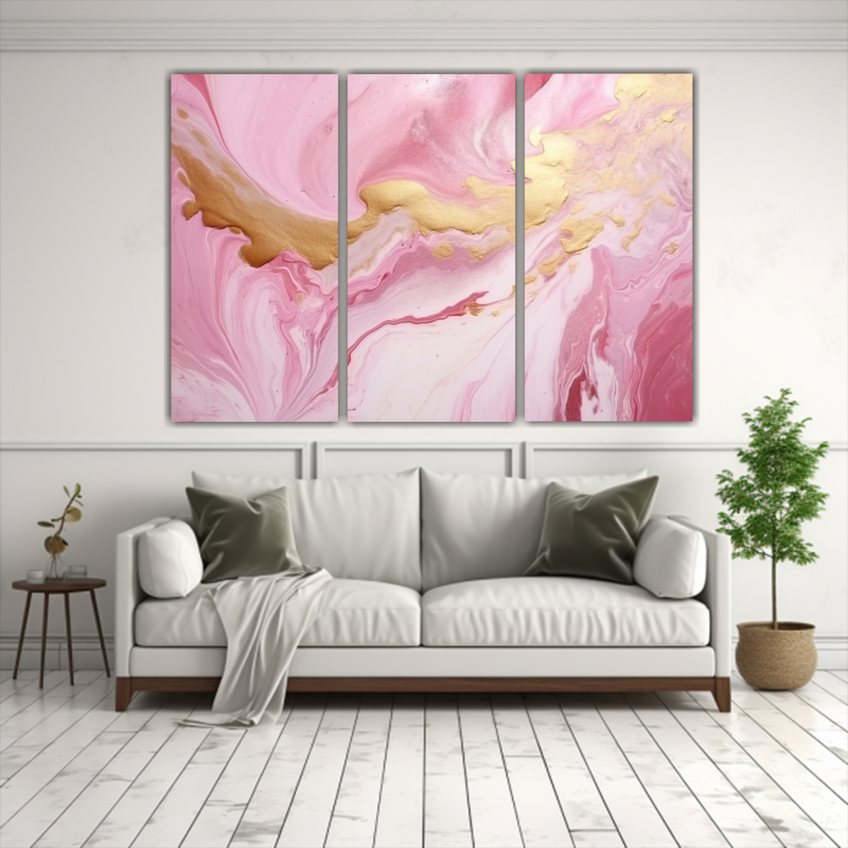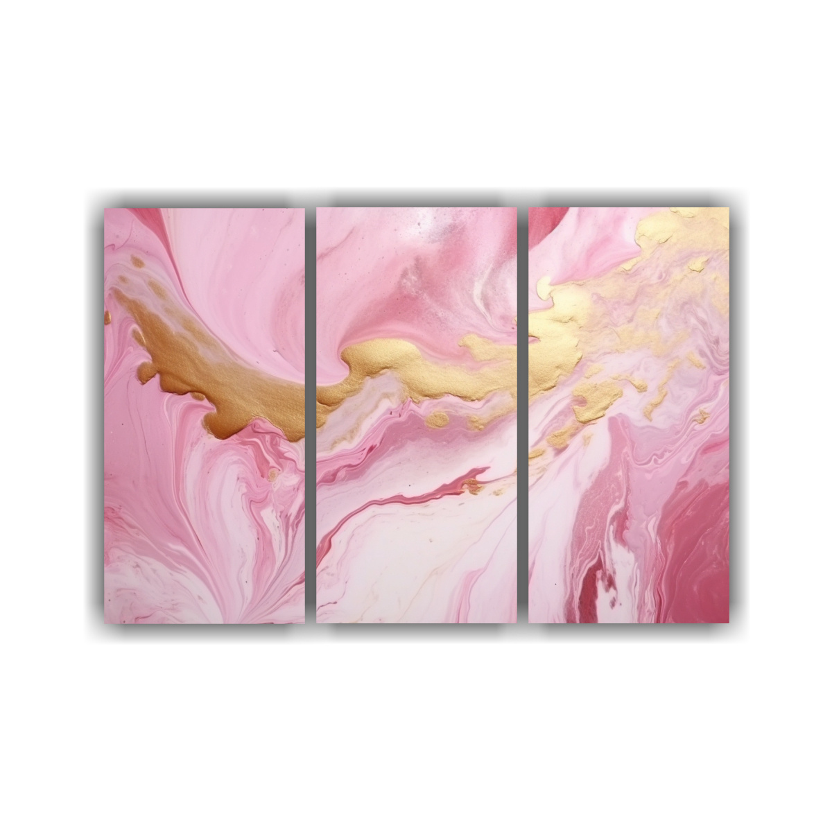 Cuadros Decorativos Elegantes En Blanco, Dorado Y Rosa Con Simetría.