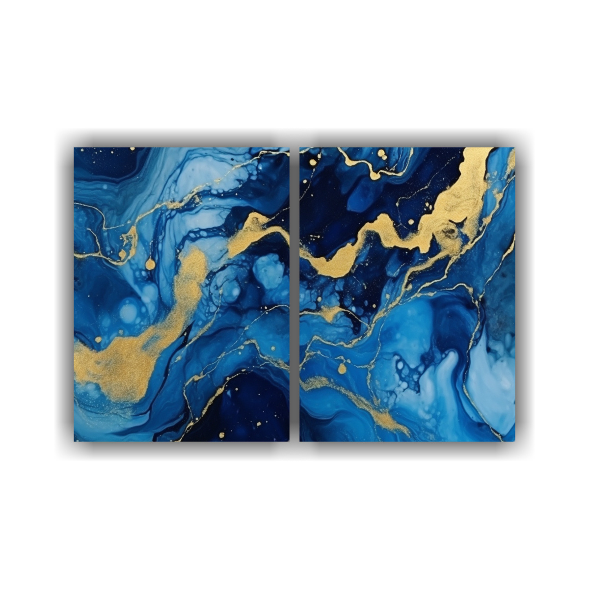 Para realzar la elegancia de tu sala de estar, coloca estos cuadros en mármol líquido azul marino y negro sobre un sofá de tonos claros y una alfombra gris El contraste de colores creará un ambiente sofisticado y moderno ¡Atrévete a decorar con estilo!