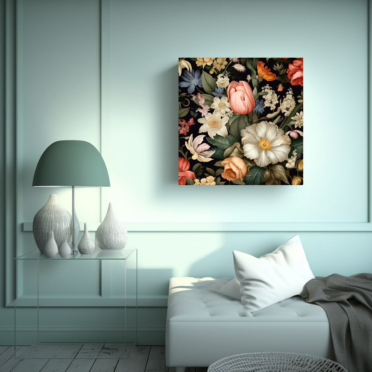 Cuadros Decorativos: Escenario Floral En Tela Bastidor De Líneas Finas