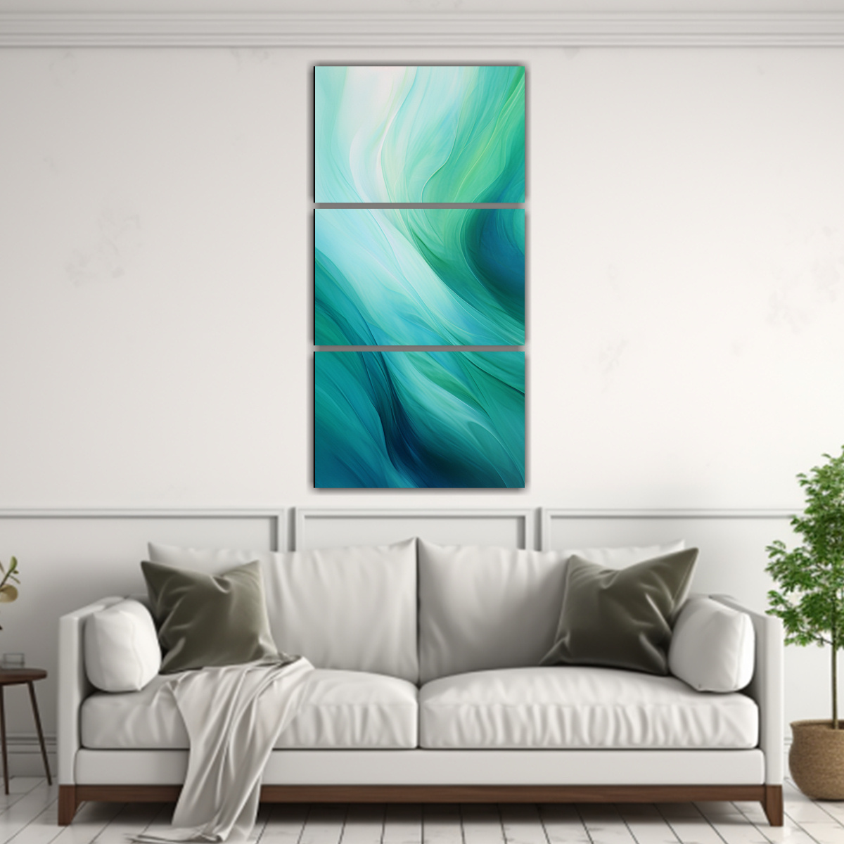 Set de 3 cuadros decorativos con diseños únicos en tonos como menta, azul marino grisáceo, plateado, aguamarina, turquesa y verde azulado Renueva tu espacio con estilo y personalidad