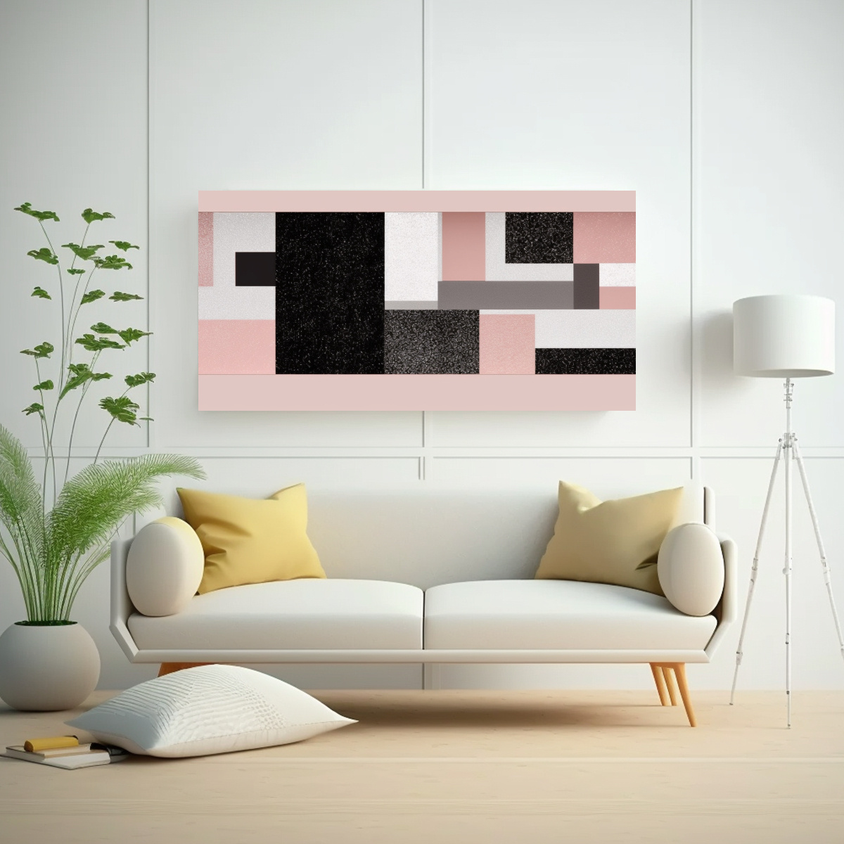 Lienzo con composición geométrica de rectángulos en diferentes formas y tonalidades Ideal para oficinas que buscan un toque moderno y elegante Destaca con este cuadro en espacios de trabajo para crear un ambiente sofisticado y profesional