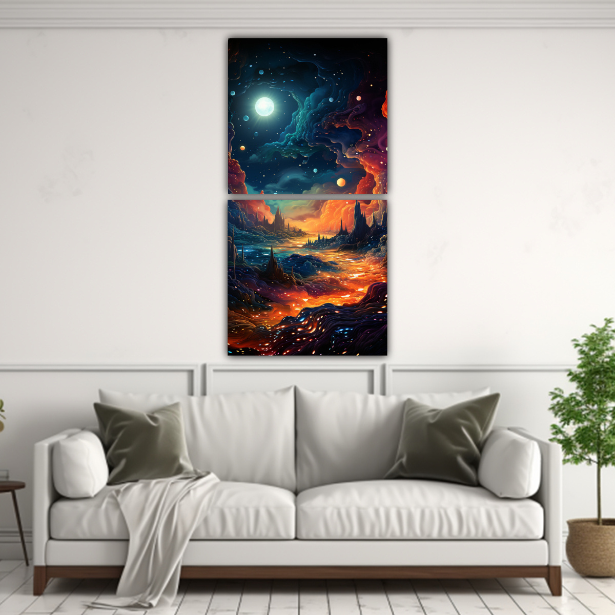 Este cuadro sería perfecto para decorar tu sala de estar o tu dormitorio Su diseño abstracto de una galaxia en colores vibrantes como el Coral, el Verde Azulado y el Lila, le dará un toque moderno y sofisticado a tu espacio Combínalo con muebles en tonos neutros como blanco o gris para crear un contraste elegante ¡Haz de tu hogar un lugar único con este cuadro de DecoCuadros!
