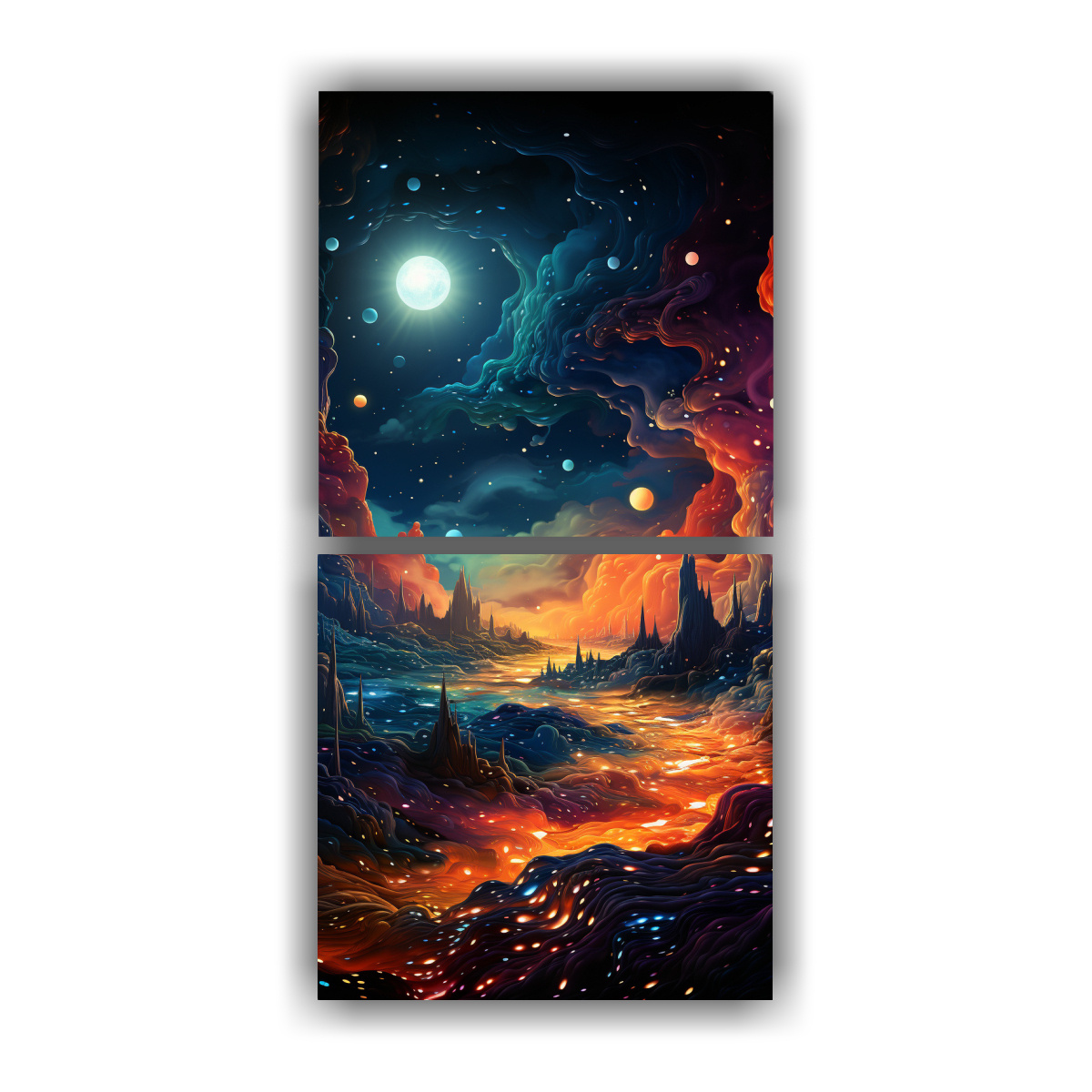 Ofrecemos múltiples tamaños y materiales de alta calidad, desde piezas compactas para estanterías hasta impactantes lienzos de gran formato.
