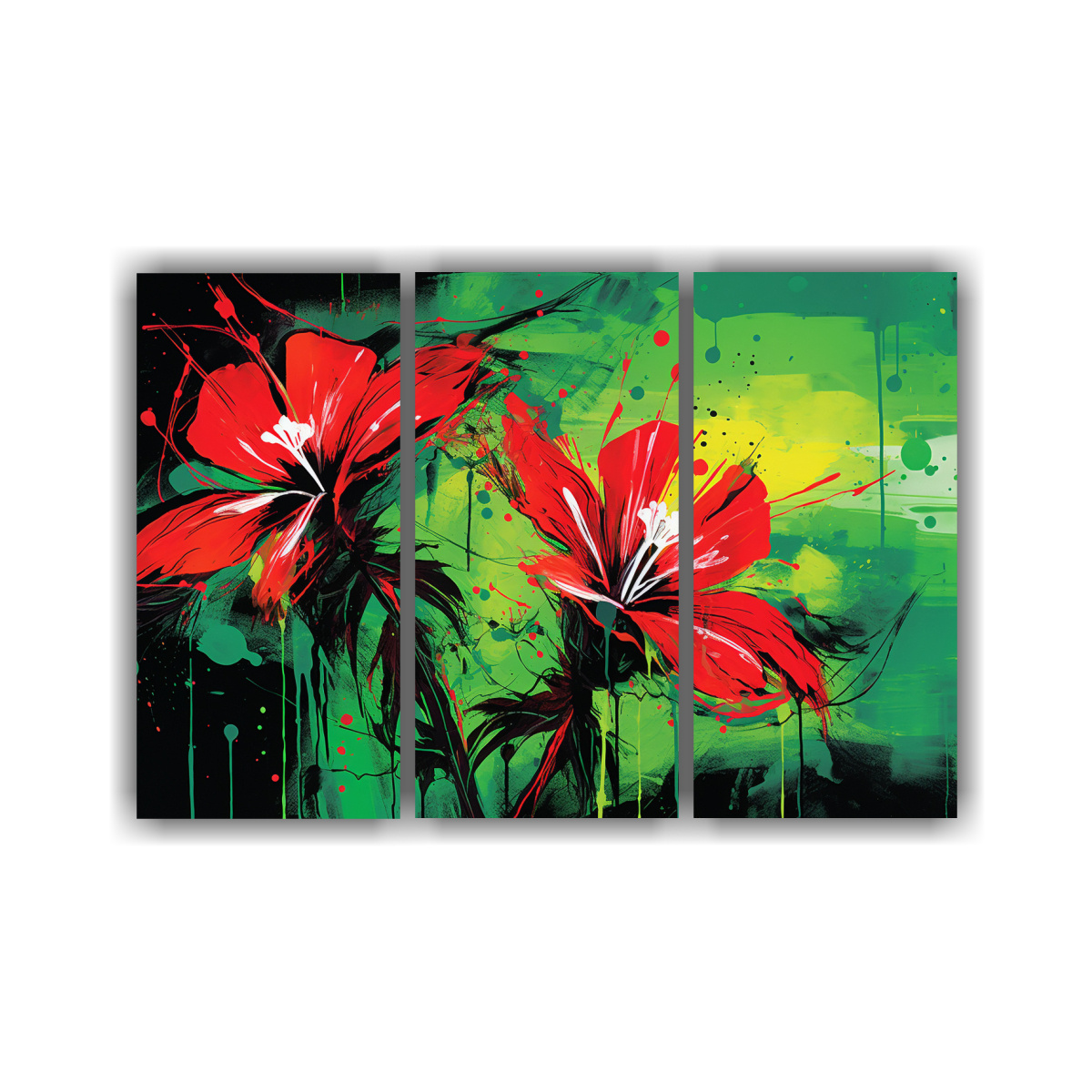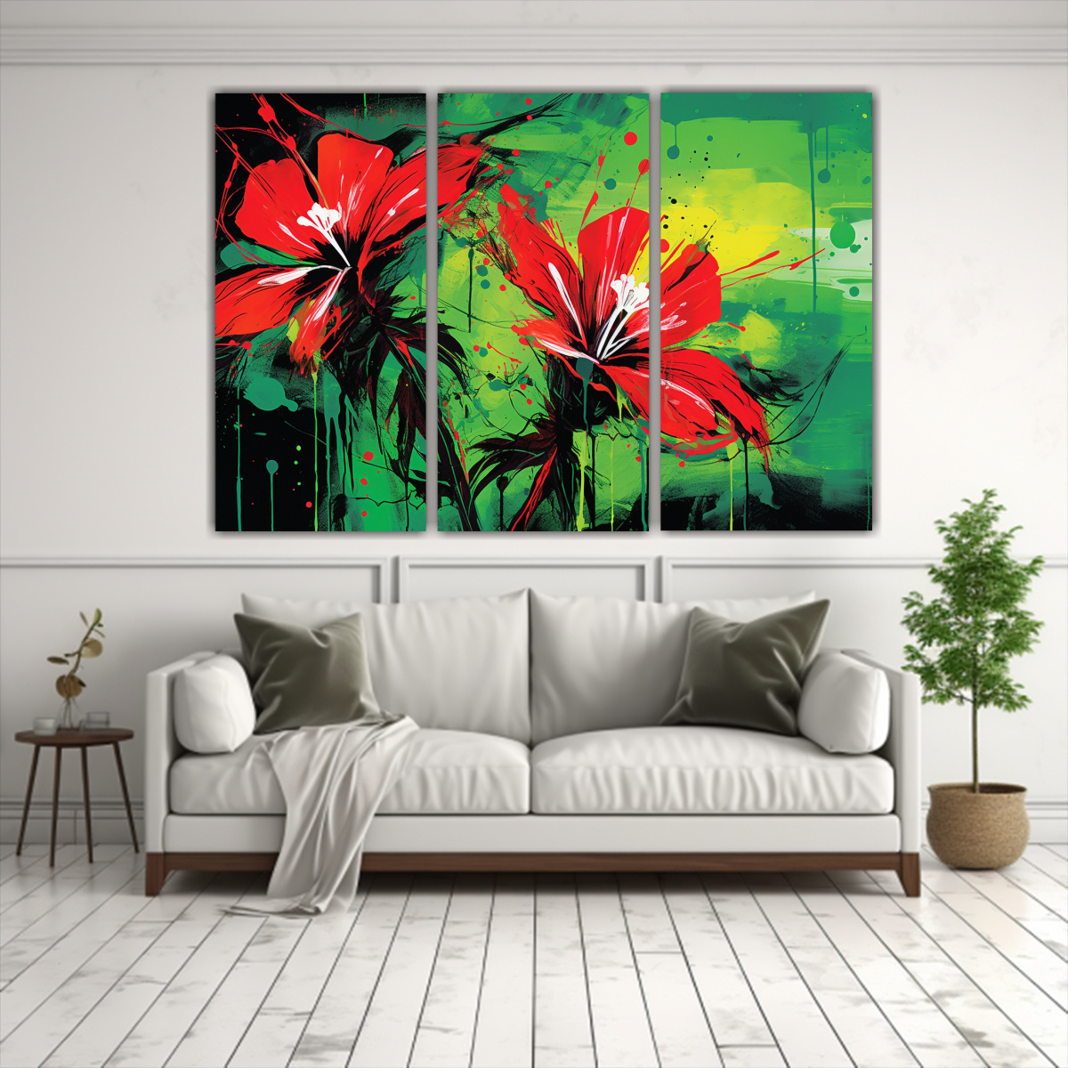 Cuadros Decorativos Intenso Verde Y Rojo, Estilo Neonoir Atmosférico.