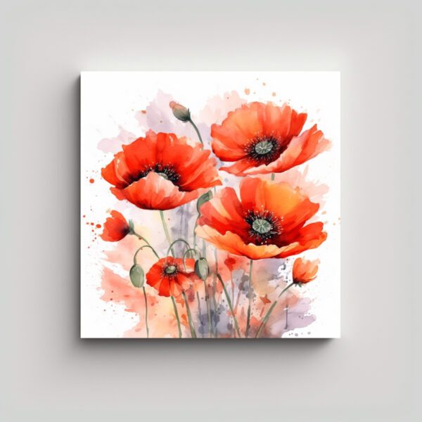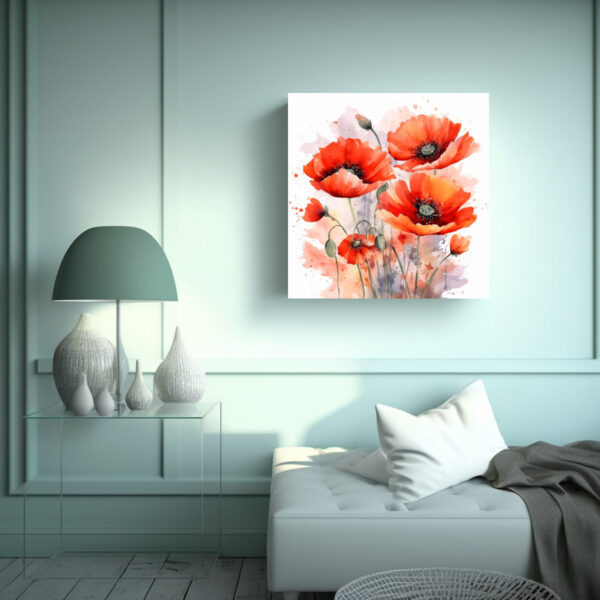 Cuadros Decorativos: Lienzo Moderno De Amapolas En Acuarela