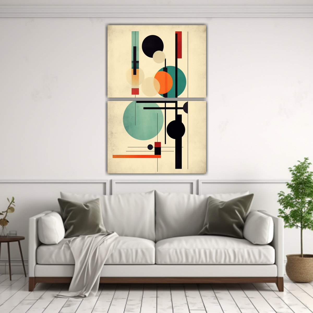 Este cuadro moderno con formas geométricas es ideal para darle un toque de creatividad a tu sala de estar Combínalo con muebles en tonos neutros como el blanco o gris, para resaltar su diseño Colócalo sobre un sofá o una repisa, creando un punto focal en tu espacio ¡Verás cómo transforma la atmósfera de tu hogar!