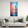 Este cuadro se vería espectacular en el salón principal de tu hogar Combina perfectamente con una decoración moderna y minimalista Colócalo sobre un sofá blanco y agrega cojines en tonos grises y dorados para resaltar los colores del cuadro Completa el ambiente con una alfombra de pelo largo en tono azul marino grisaceo ¡Crearás un espacio sofisticado y elegante!