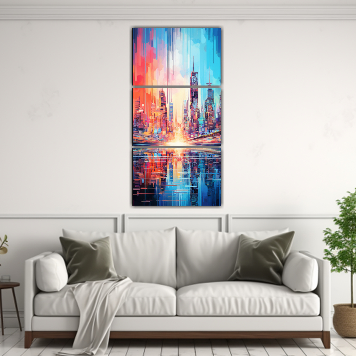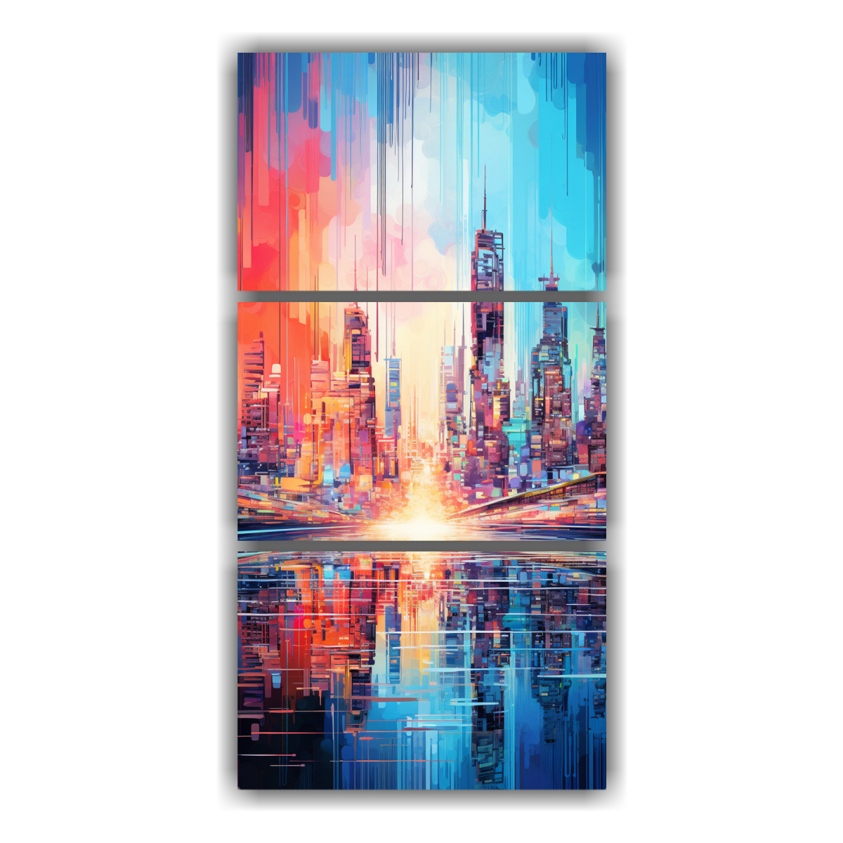 Cuadros Decorativos Modernos De Arte Mixto De Glitch Art Con Vibrantes Horizontes Urbanos