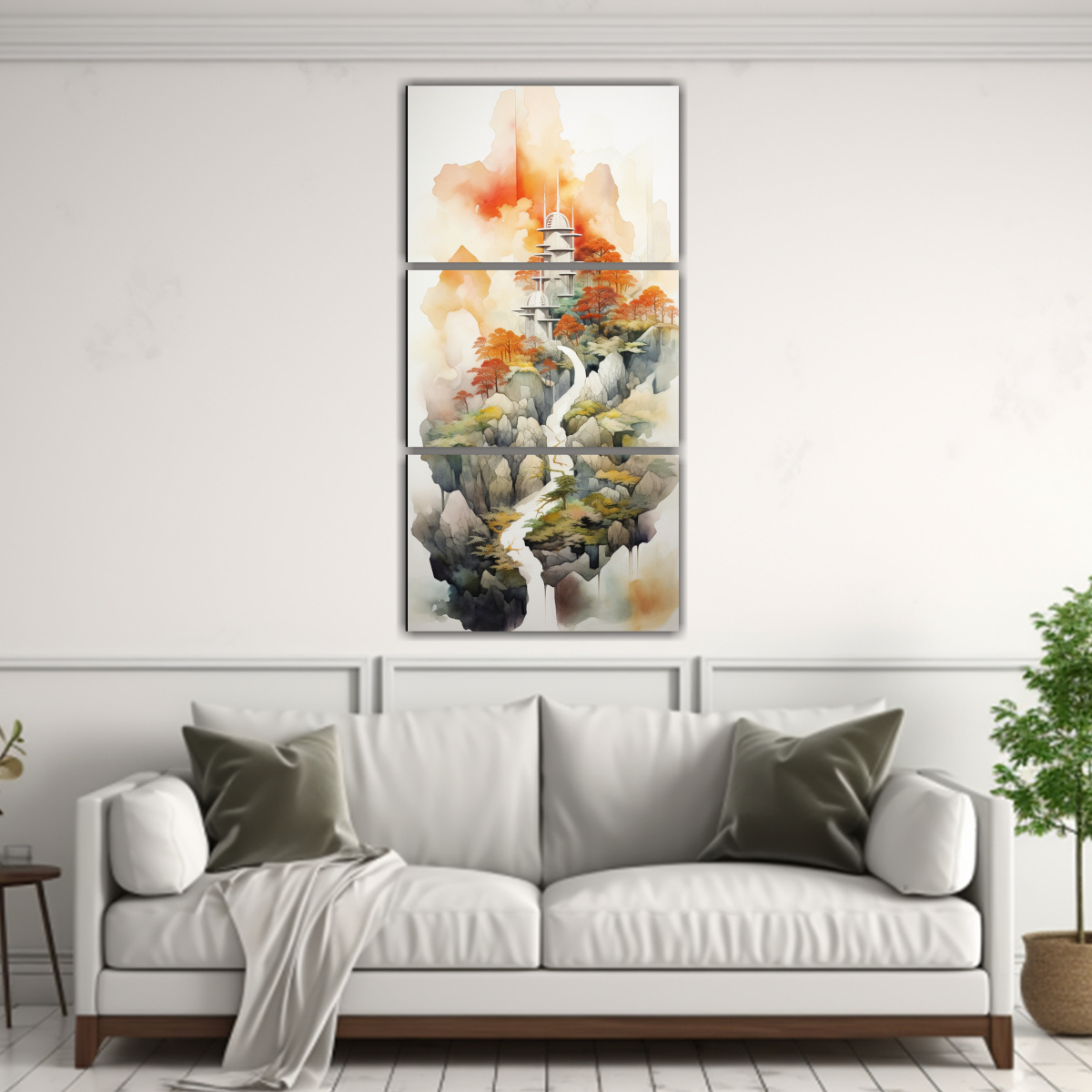 Este cuadro de paisajes abstractos en acuarela es perfecto para decorar tu sala de estar Colócalo sobre el sofá principal para crear un punto focal y combínalo con cojines en tonos coral y gris para lograr una armonía cromática Además, puedes complementar la decoración con plantas naturales para darle un toque fresco y natural al ambiente