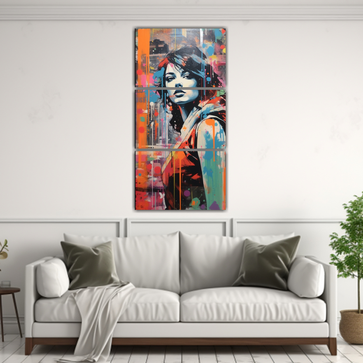 Este set de cuadros es ideal para decorar una sala de estar moderna Puedes colocarlos en una pared blanca para resaltar su vibrante paleta de colores Combínalos con muebles en tonos neutros como beige o gris para crear un contraste elegante También puedes colocarlos en un pasillo o en un dormitorio para agregar un toque de arte callejero popart a tu decoración