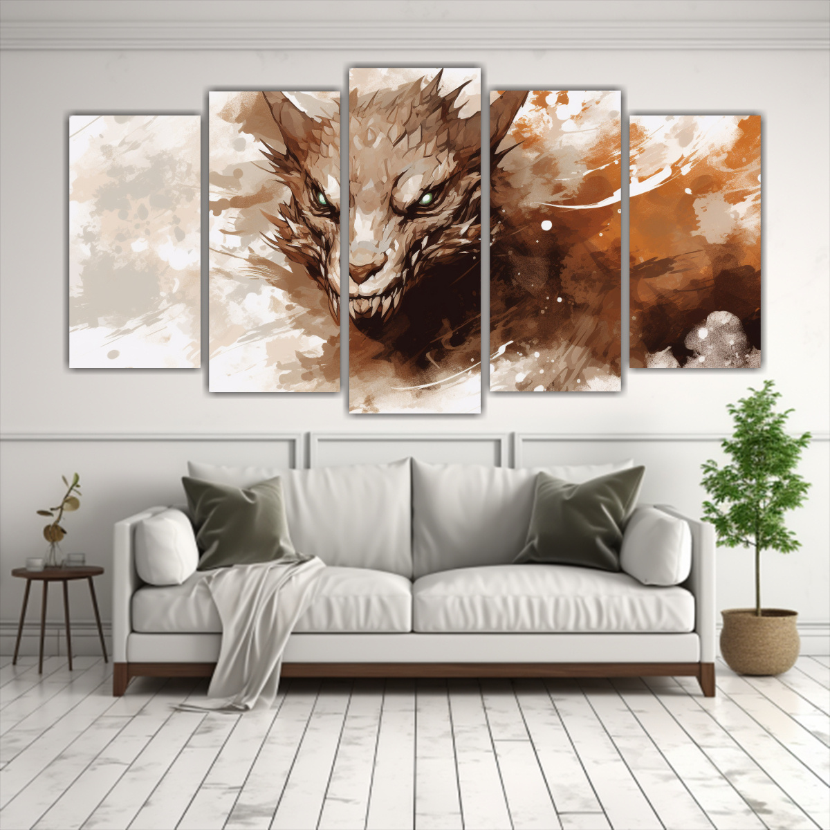 Este cuadro de dragón en tonos marrón y blanco quedará perfecto en tu sala de estar sobre un sofá en tonos neutros, como beige o gris Combínalo con cojines en azul marino para crear un ambiente sofisticado y misterioso ¡Impresiona a tus invitados con esta pieza única!
