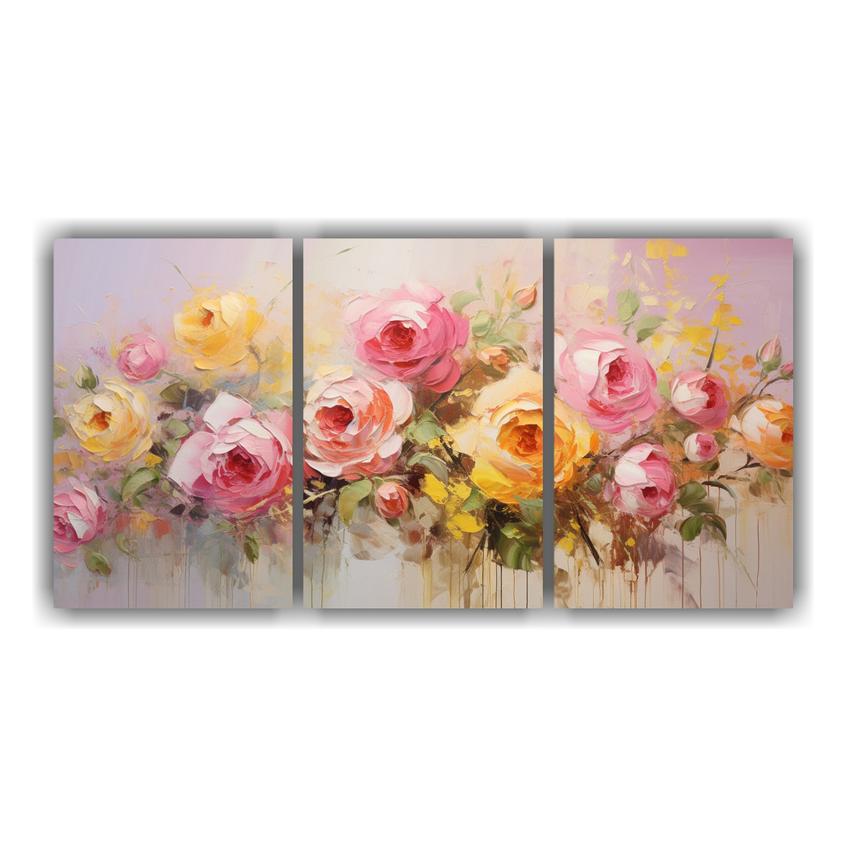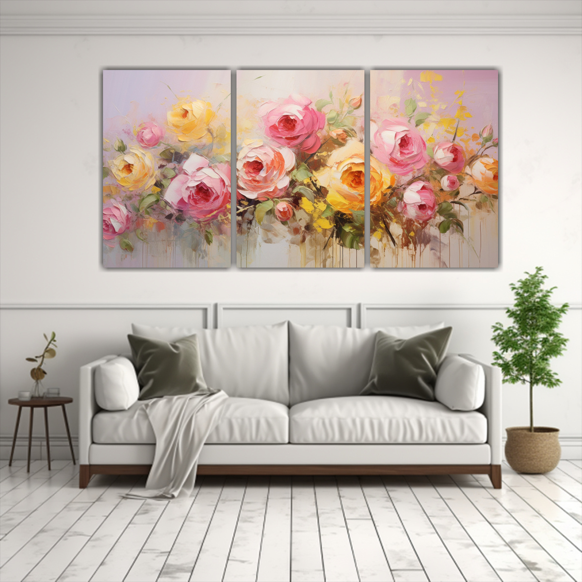 Este cuadro de flores amarillas y rosas en lienzo es perfecto para darle un toque de alegría y elegancia a tu sala de estar o dormitorio Colócalo sobre una pared en tonos neutros como beige, gris o chocolate para resaltar sus colores vibrantes Combínalo con cojines y cortinas en tonos coral o rosado claro para lograr una armonía visual ¡Atrévete a lucir un espacio único con este diseño exclusivo de DecoCuadros!