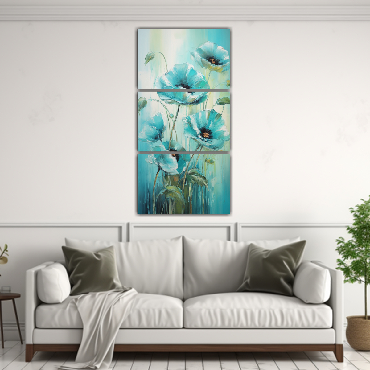 Este cuadro de Cuadros Dibujo Clásico Turquesa con Amapolas en Estilo POPPIES es perfecto para darle un toque de elegancia y color a tu sala de estar Combínalo con muebles en tonos neutros como gris claro o blanco para resaltar su belleza Colócalo en una pared amplia y despejada para que se convierta en el centro de atención ¡Será el punto focal de tu hogar y cautivará todas las miradas!