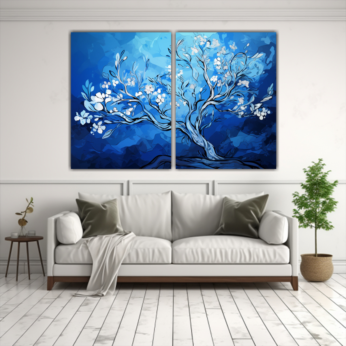 Renueva tu hogar con el Set 2 Cuadros Dibujo Equilibrio A Arbutus Tree in Blue Colors Neo-noir atmosphere neo pop de DecoCuadros Aporta elegancia con colores como Turquesa, Verde Azulado y Gris, destacando por su calidad y precios accesibles ¡Envíos express a regiones disponibles!