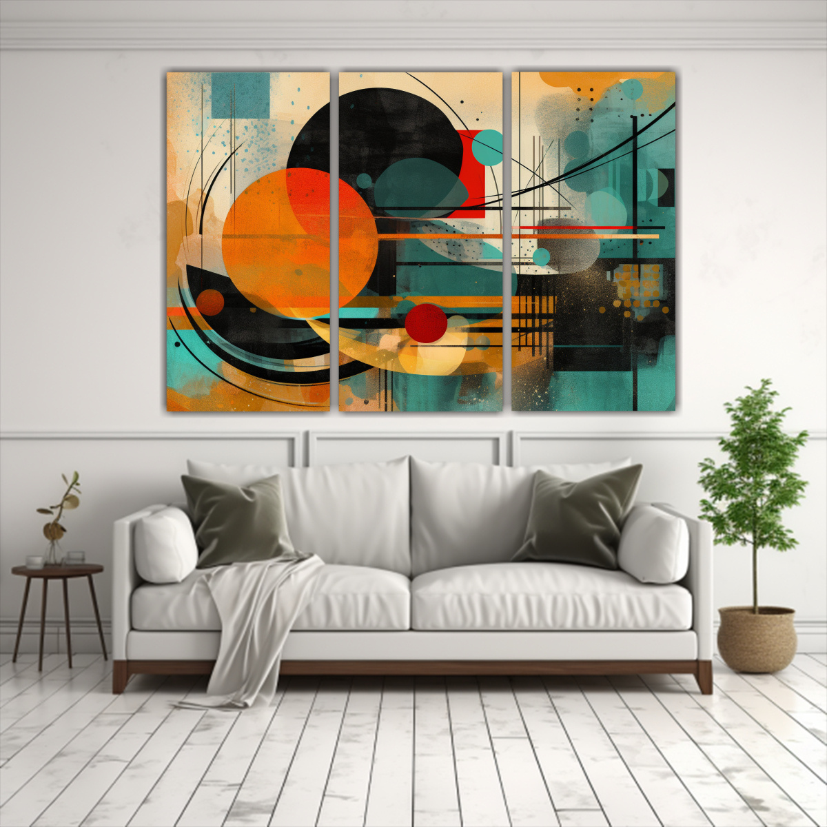 Decora tus espacios con elegancia y estilo con este set de 3 cuadros en azul marino grisáceo, gris, mostaza y más Renueva tu hogar con arte exclusivo y envío express a regiones