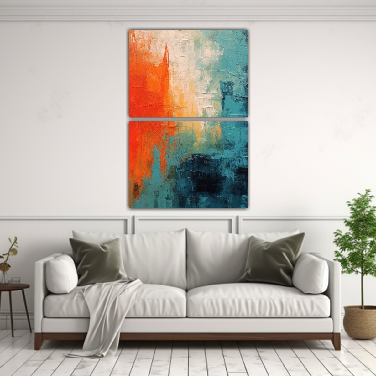 Cuadros Dibujo Originalidad 369 Pintura Abstracta En Azul, Naranja Y Rojo En Decoración