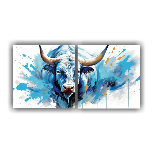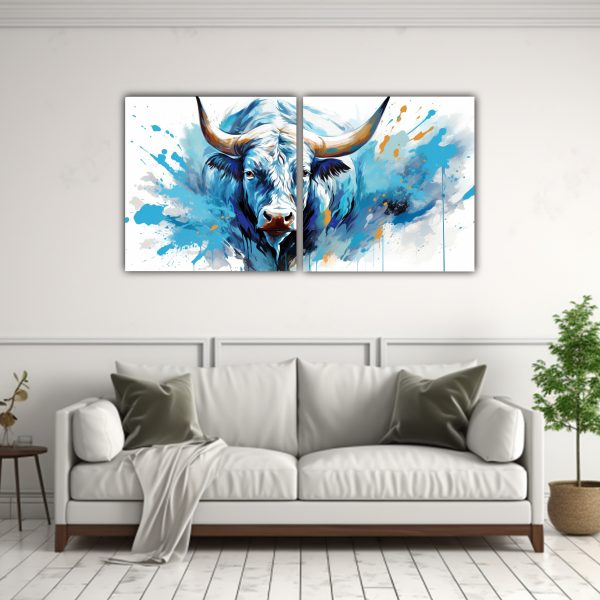 Cuadros Diseño Actuales: Toros Blancos Y Azules En Arte Pop Neo Estampado, Set De 2