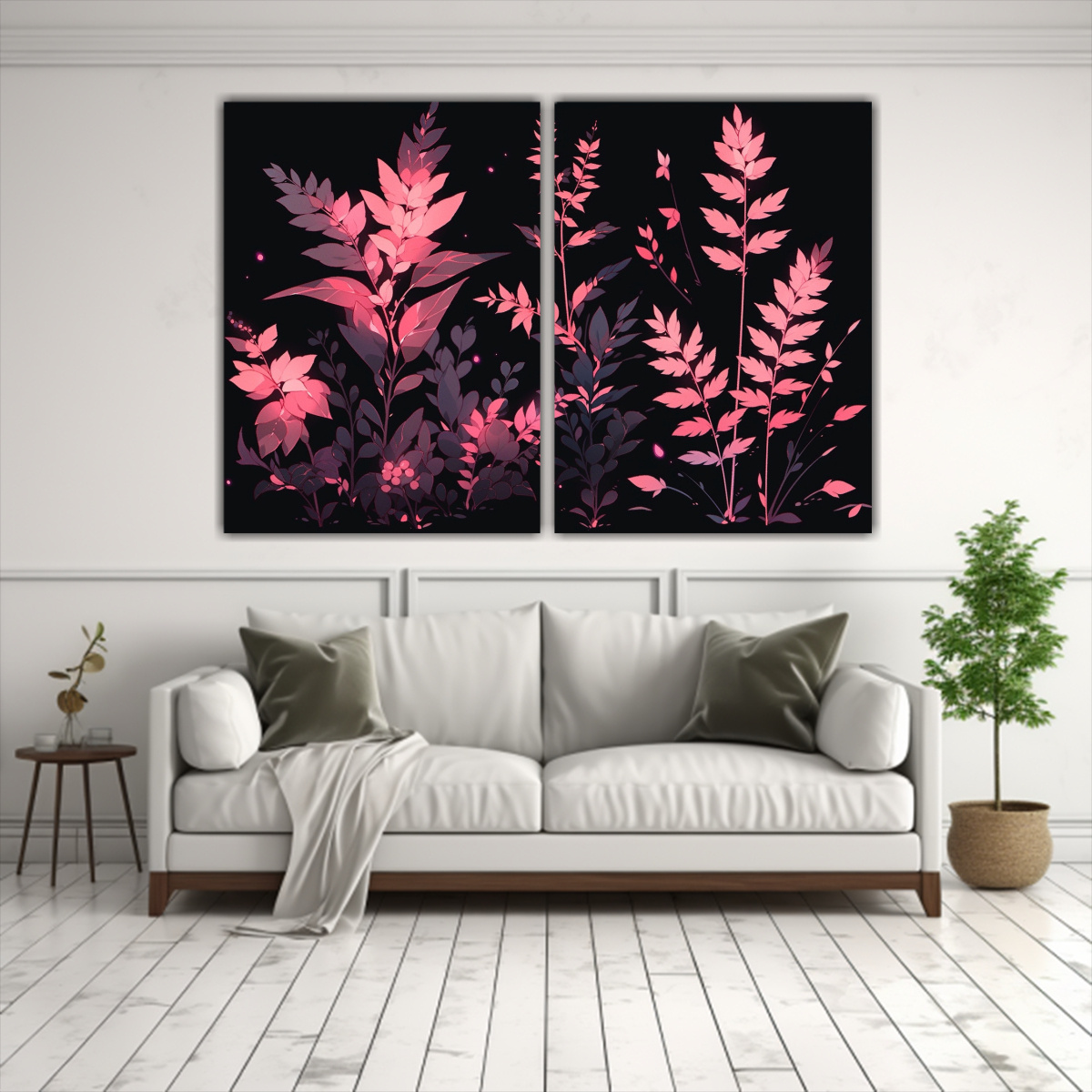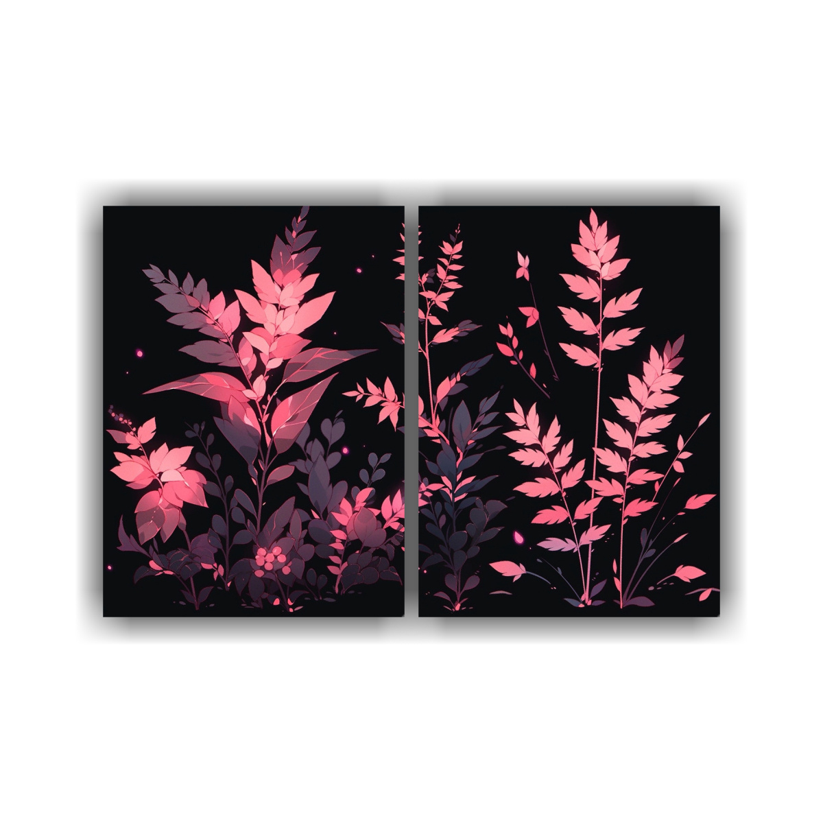 Dos Cuadros Diseño Alegría con colores Coral, Negro, Azul Marino grisáceo, Carmesí, Gris Aporta una atmósfera neonoir a tu hogar con nuestras pinturas impresas en tela de alta calidad ¡Hazte con el tuyo!