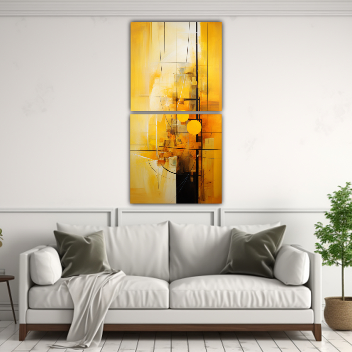 Si buscas una forma de agregar energía y vitalidad a tu sala de estar, coloca los Cuadros Diseño Visual amarillos en un muro en blanco o crema para que resalten y se conviertan en el punto focal de la habitación Combínalos con muebles en tonos neutros como blanco y gris para crear un contraste elegante y moderno También puedes colocarlos en tu oficina para darle un toque de creatividad y calidez ¡Atrévete a decorar con estilo!
