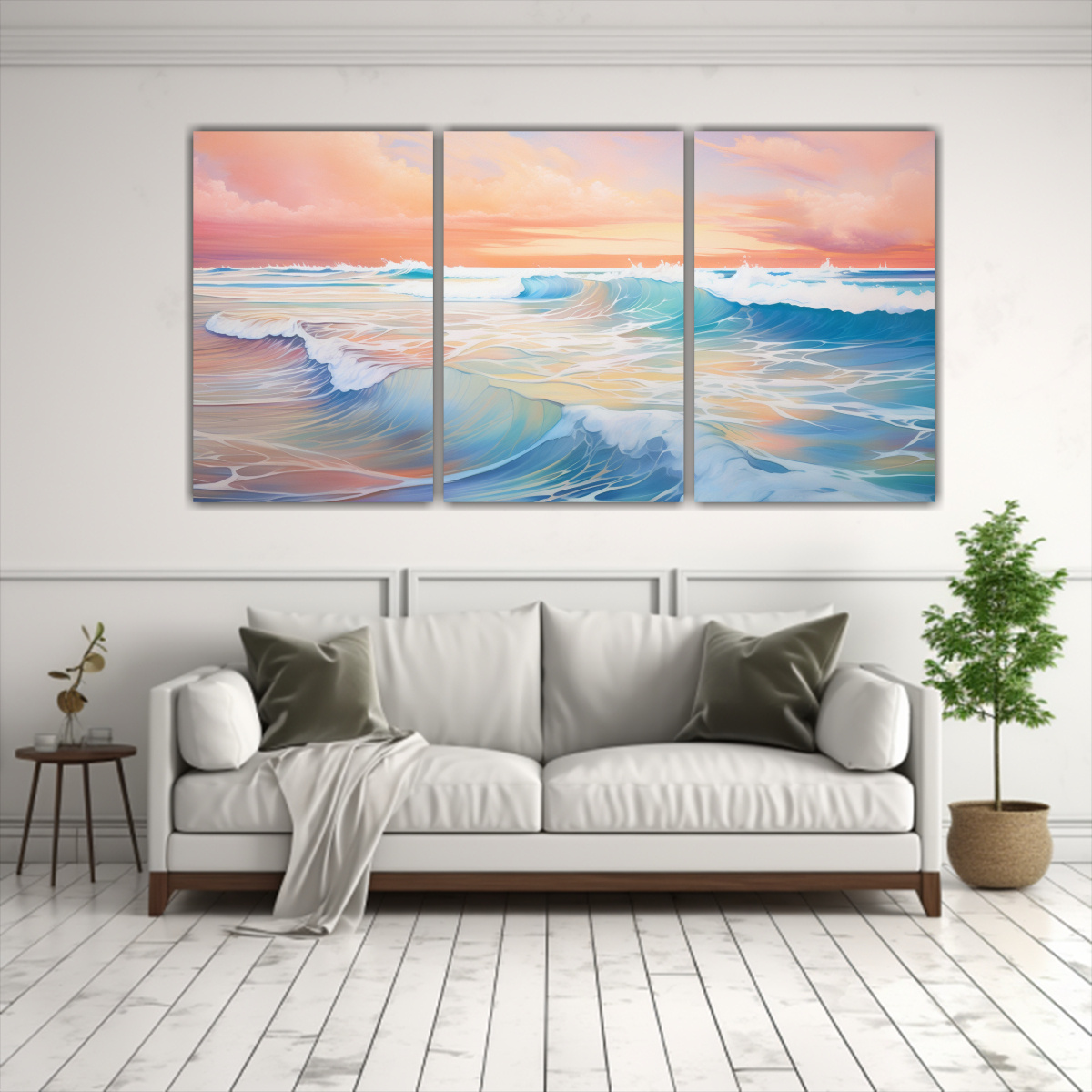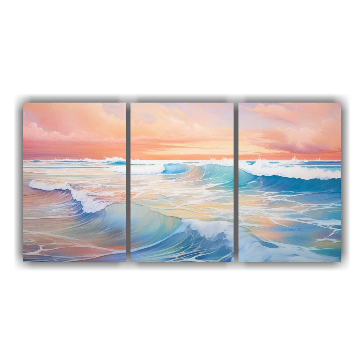 DecoCuadros te ofrece tres cuadros con imágenes Dreamlike Abstractos que representan el flujo y reflujo de la marea Los colores plateado, menta, turquesa, gris, lila, beige, coral y rosado claro se combinan para crear un efecto de profundidad Impresos en tela de alta calidad y montados en bastidores de madera, estos cuadros son perfectos para decorar cualquier espacio de tu hogar u oficina ¡Compra ahora y aprovecha nuestra calidad incomparable y precios económicos!