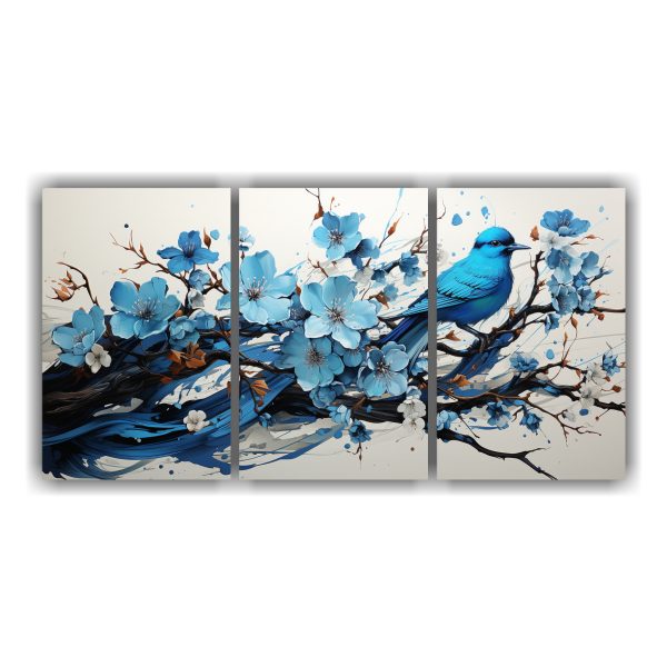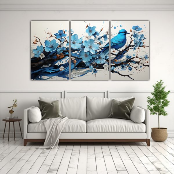 Cuadros Elegantes: Tres Lienzos únicos De Un Cerezo En Negro Y Azul, Atmósfera Neonoir.