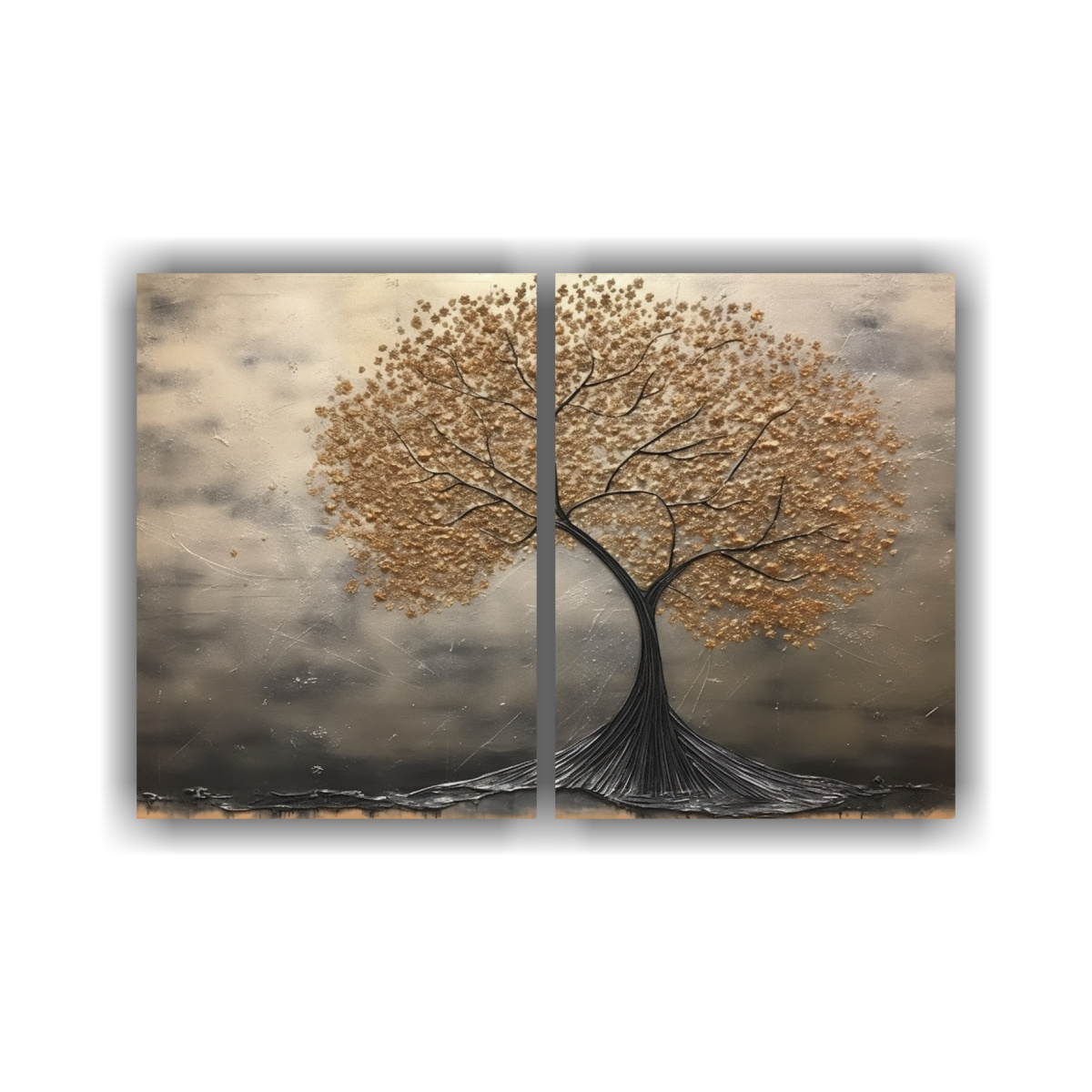 Renueva tu espacio con el Set 2 Telas en Bastidor Alta Calidad Pop Art Thanh Binh, una pintura de árbol en tonos Gris, Plateado, Azul Marino grisáceo y Chocolate Calidad Premium y Diseño Exclusivo