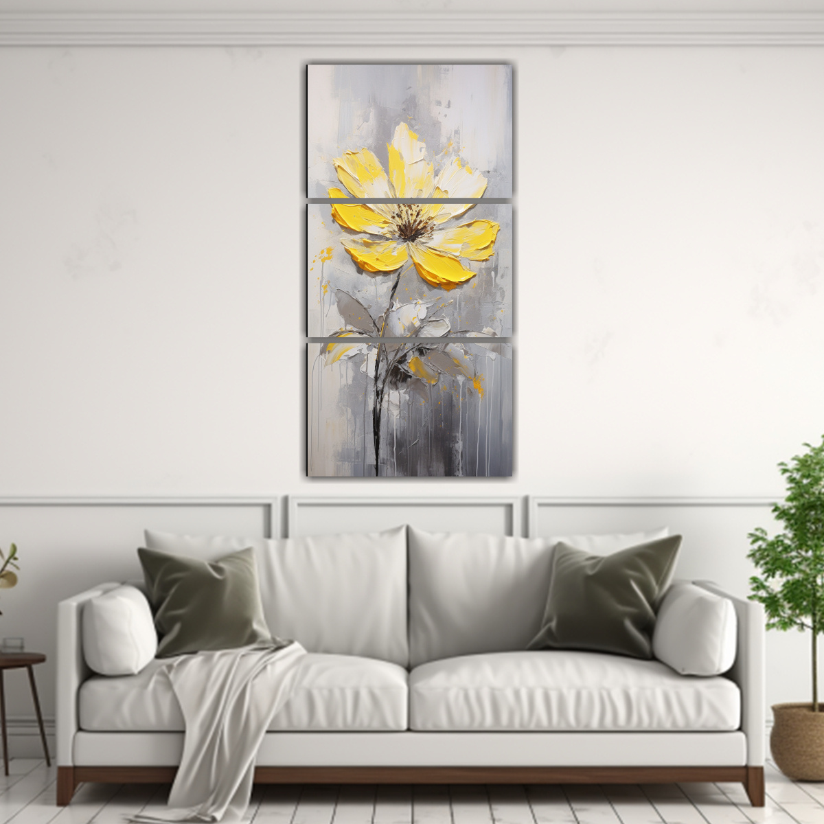 Este Cuadro en relieve de flor amarilla en lienzo se vería espectacular en el recibidor de tu hogar, creando un ambiente acogedor y elegante Combínalo con muebles en tonos neutros para resaltar su belleza y darle un toque sofisticado a tu entrada