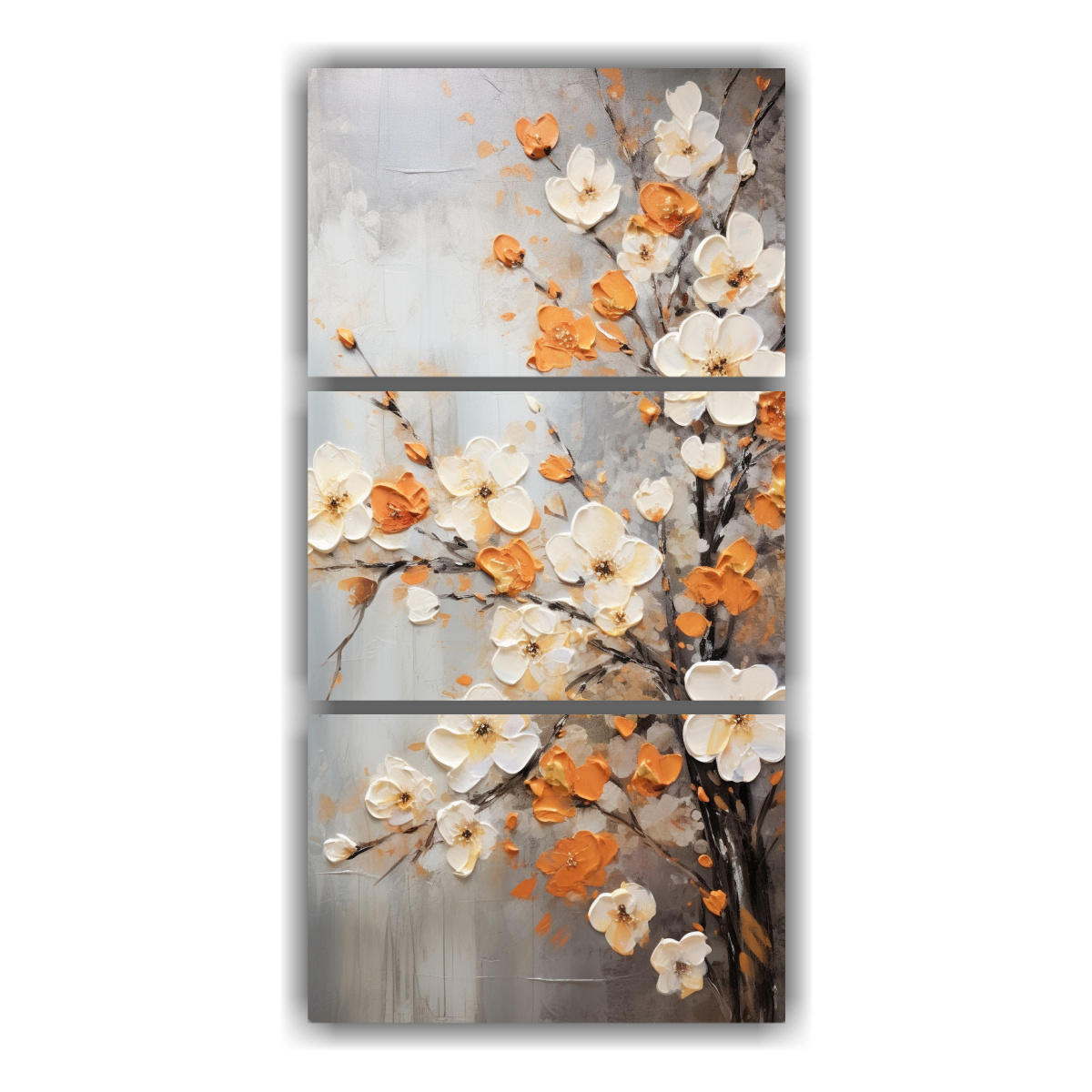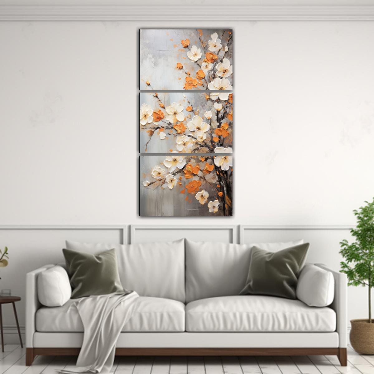 Coloca estos Cuadros estilo Galería con Flores de Cerezo en Naranja en tu sala de estar para crear un ambiente cálido y acogedor Combínalos con muebles en tonos neutros y accesorios decorativos en colores dorado y coral para resaltar su belleza ¡Dale vida a tu espacio con nuestros cuadros decorativos!