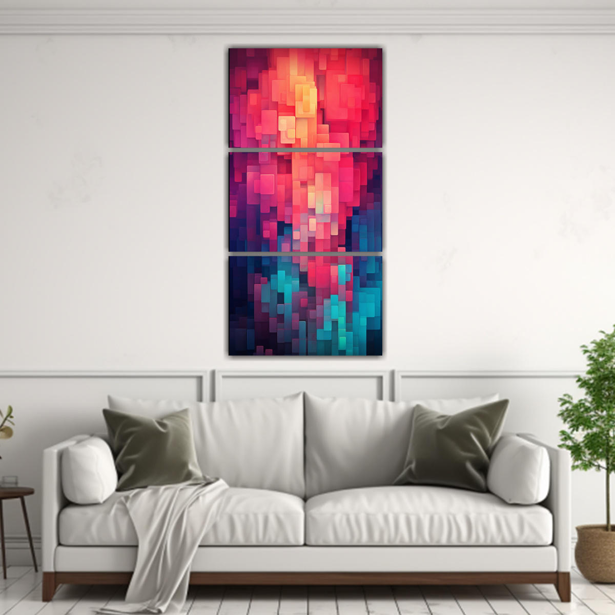 Este cuadro de Elegancia Abstracta se vería perfecto en la sala de estar sobre un sofá gris claro, creando un contraste elegante y moderno ¡Atrévete a decorar con arte digital sofisticado!