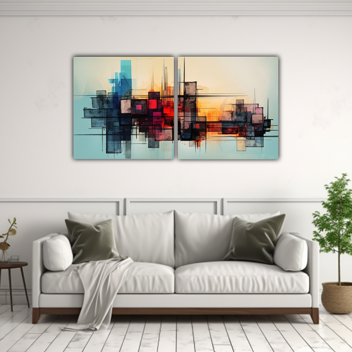 Este cuadro estilo galería con efecto visual surrealista, abstracto, cubismo minimalista es perfecto para decorar tu sala de estar Su combinación de colores como el plateado, azul marino grisaceo, carmesí, gris, coral, turquesa, verde azulado y lila le dará un toque moderno y sofisticado a tu espacio Puedes colocarlo sobre un sofá de color neutro para resaltar los tonos vibrantes del cuadro También puedes complementar la decoración con cojines en tonos similares para crear un ambiente armonioso ¡No esperes más y haz de tu sala un lugar único con este cuadro decorativo de alta calidad!