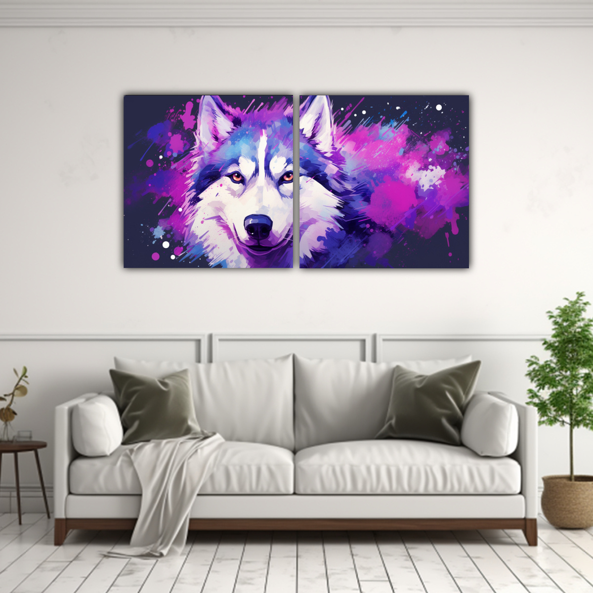 Cuadros Estilo Galería Para Oficina: Husky En Tonos Pastel Y Morado Neo Pop Art