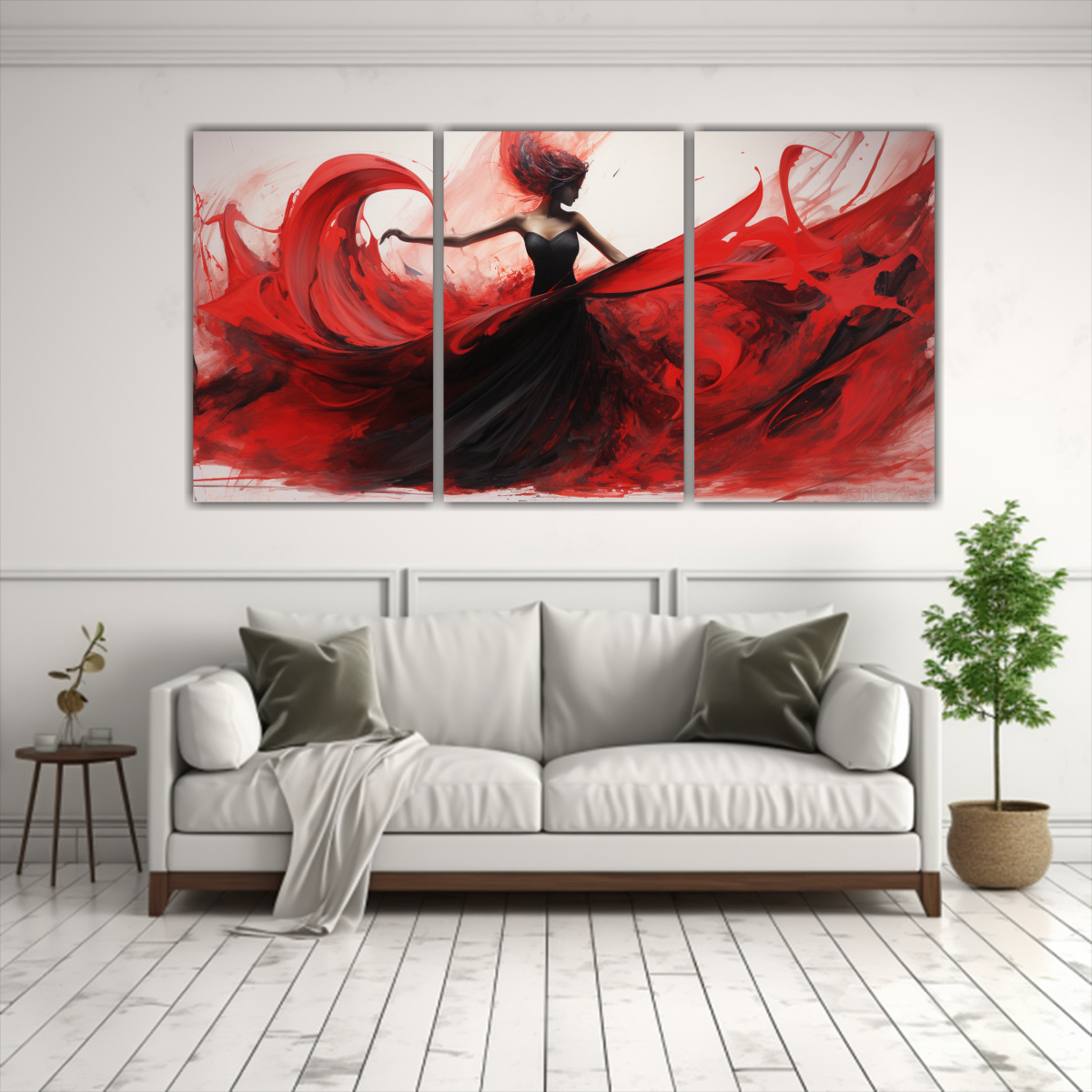 Este cuadro de energía cinética de un bailarín de flamenco en colores plateado, negro y carmesí añadirá un toque elegante y vibrante a tu sala de estar Colócalo sobre un sofá de color gris o lila para crear un contraste sofisticado y moderno ¡Será el centro de atención de tus invitados!