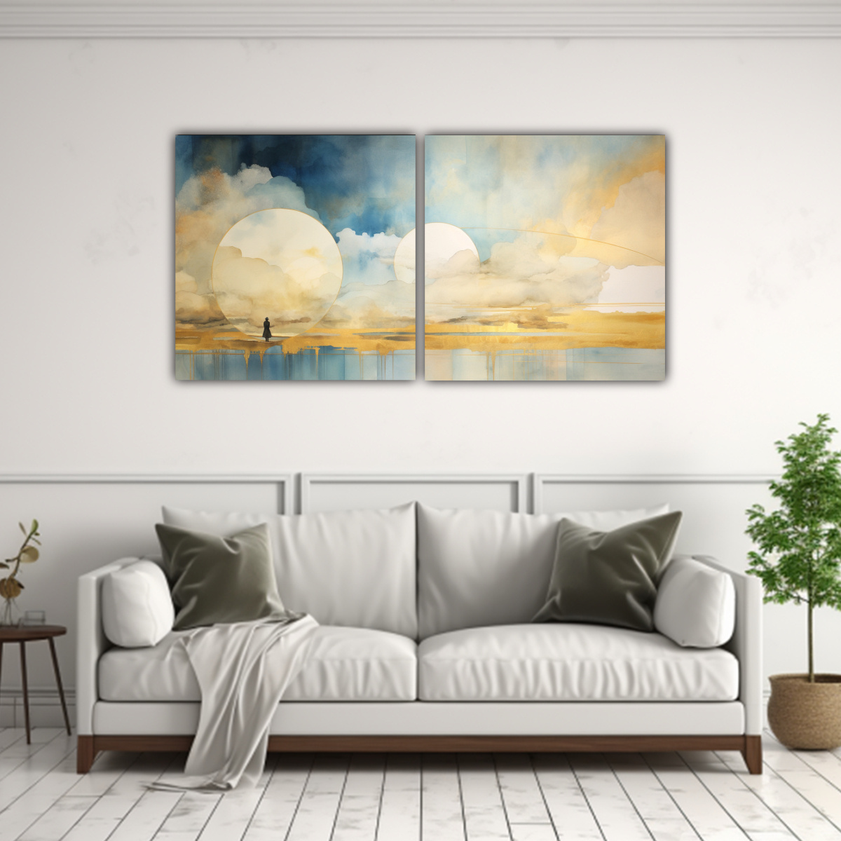 Cuadros Expresión Elegante Con Acuarela Arcoíris En Tonos Teal Y Dorado