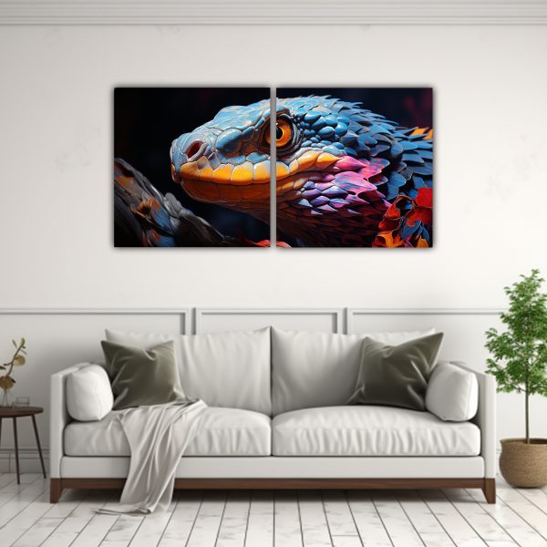 Este set de cuadros Rattlesnake en estilo oleo es perfecto para colocar en la sala de estar sobre un sofá de color neutro Aportará sofisticación y modernidad al ambiente, combinando a la perfección con muebles en tonos tierra y accesorios dorados