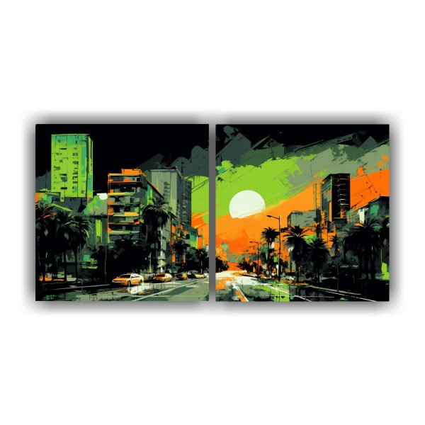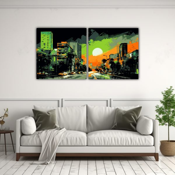 Cuadros Expresionistas De Naturaleza Viva En Santiago, Chile En Colores Verde Y Naranja Neo.