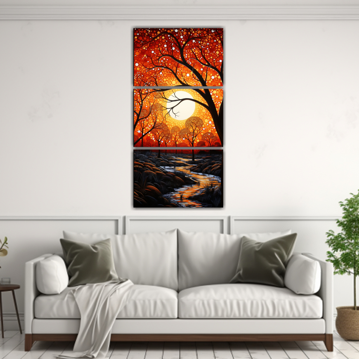 Este cuadro quedaría perfecto en la sala de estar sobre un sofá de color neutro para resaltar los tonos cálidos y vibrantes Complementa con cojines en colores similares y una alfombra en tonos tierra para crear un ambiente acogedor y elegante