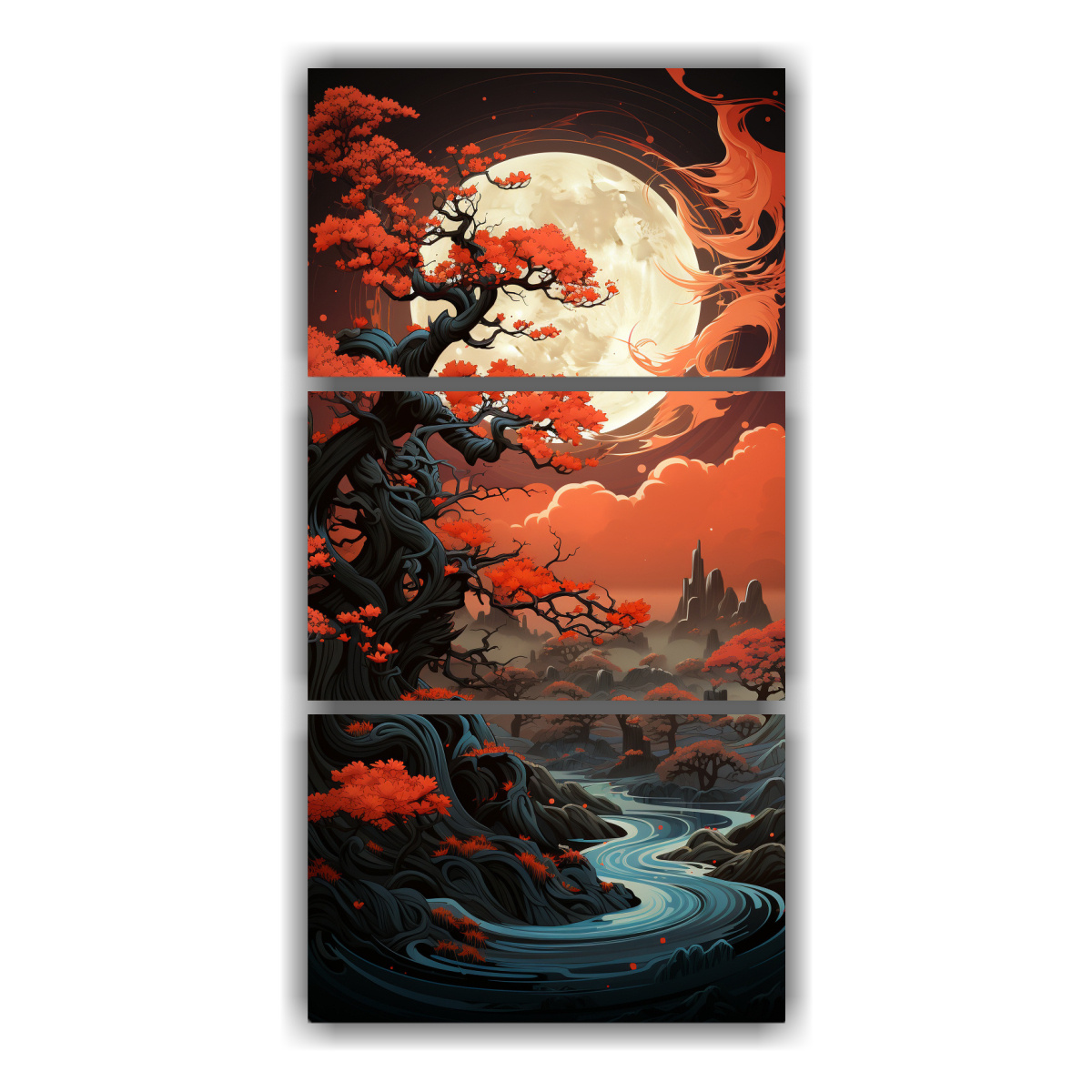 Cuadros Finas Líneas Contraste Árbol Bonsái En Tonos Naranja Neonoir Atemporal