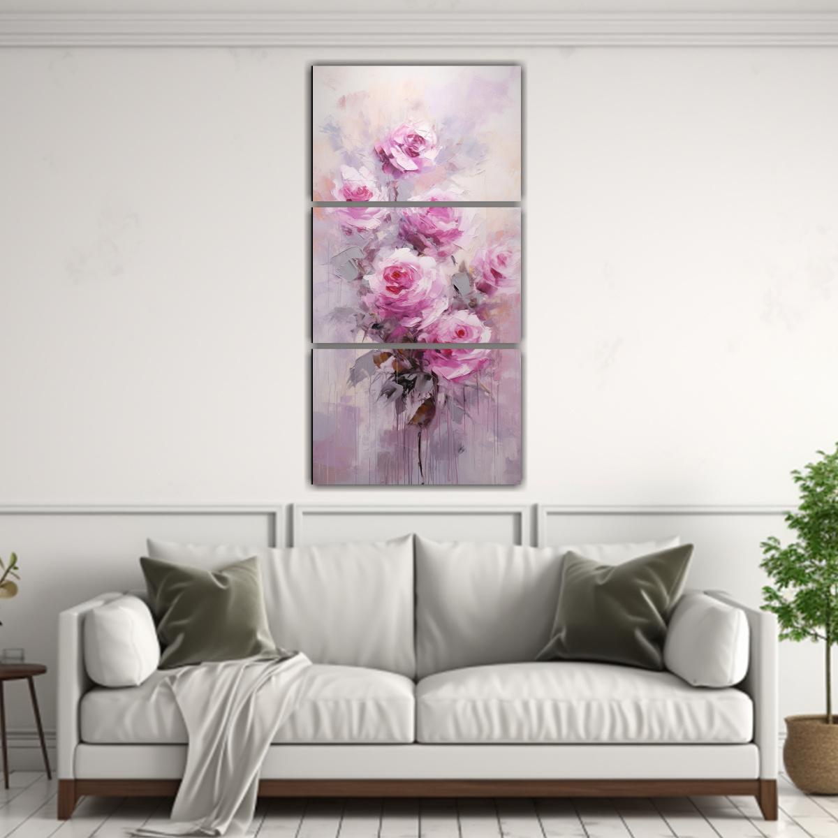 Este cuadro de finas líneas simetría de rosas rosadas en lienzo es perfecto para decorar una pared en la sala de estar o en el dormitorio Combínalo con tonos neutros como el beige o el gris para crear un ambiente elegante y sofisticado También puedes colocarlo en la entrada de tu hogar para darle la bienvenida a tus invitados con estilo ¡Añade un toque de belleza y armonía a tu espacio con este cuadro exclusivo de DecoCuadros!