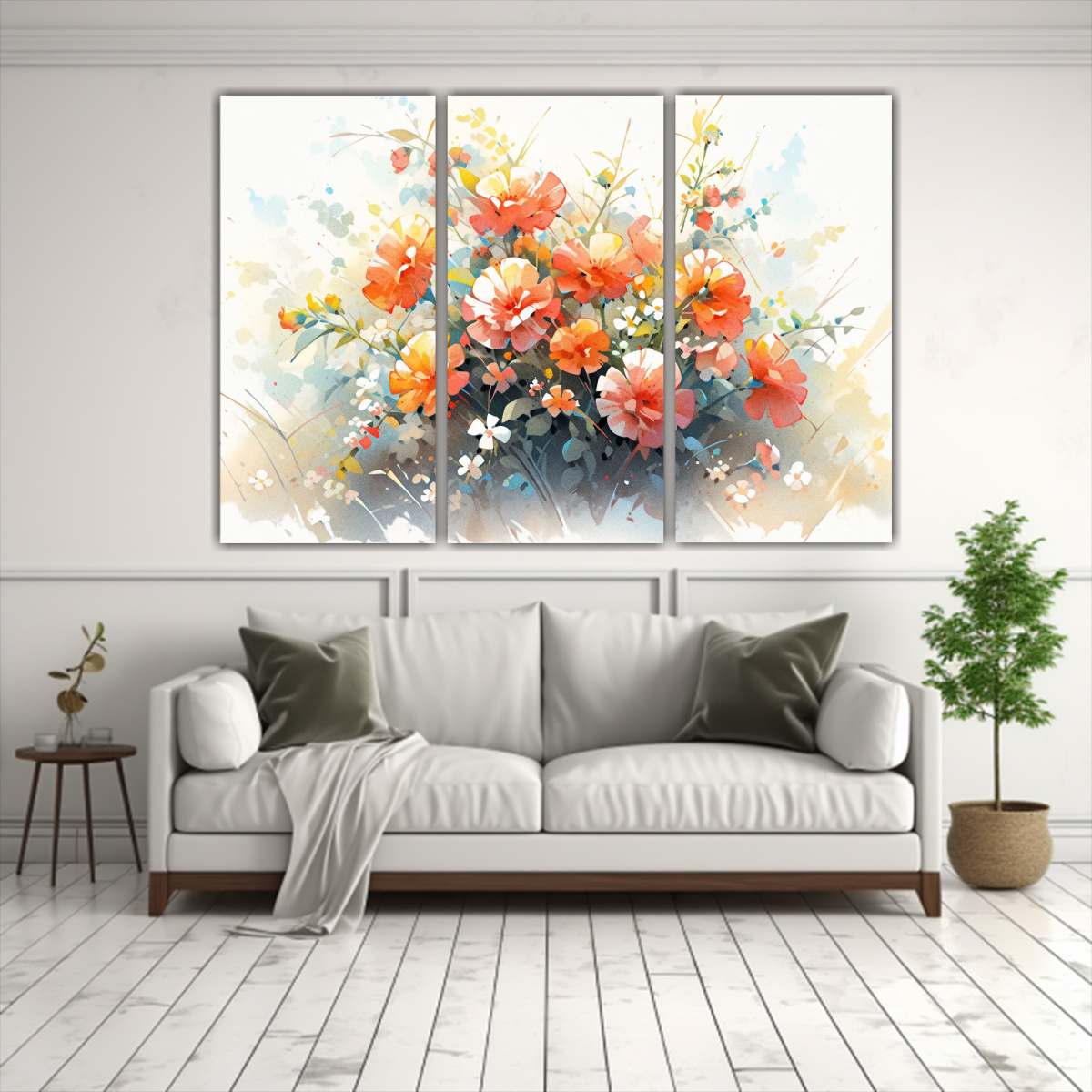 Incorpora la elegancia y frescura de las Acuarelas florales en lienzo al estilo de a tus espacios con este hermoso set de cuadros Con colores vibrantes como Coral y Turquesa, añadirán un toque de sofisticación Perfecto para salas, dormitorios o recibidores ¡Renueva tu decoración con estilo y calidad!