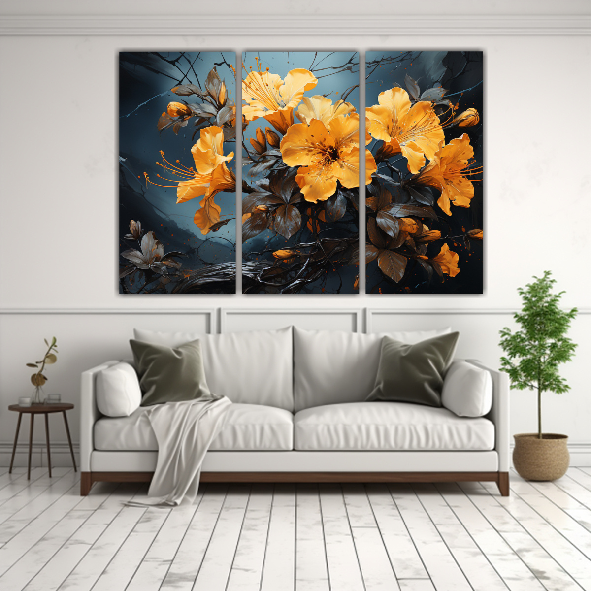 Para realzar la belleza de estos cuadros florales amarillos, te recomendamos colocarlos en un living o sala de estar con tonos neutros como blanco y beige Combinados con muebles de líneas simples y detalles en chocolate, crearás un ambiente armonioso y elegante