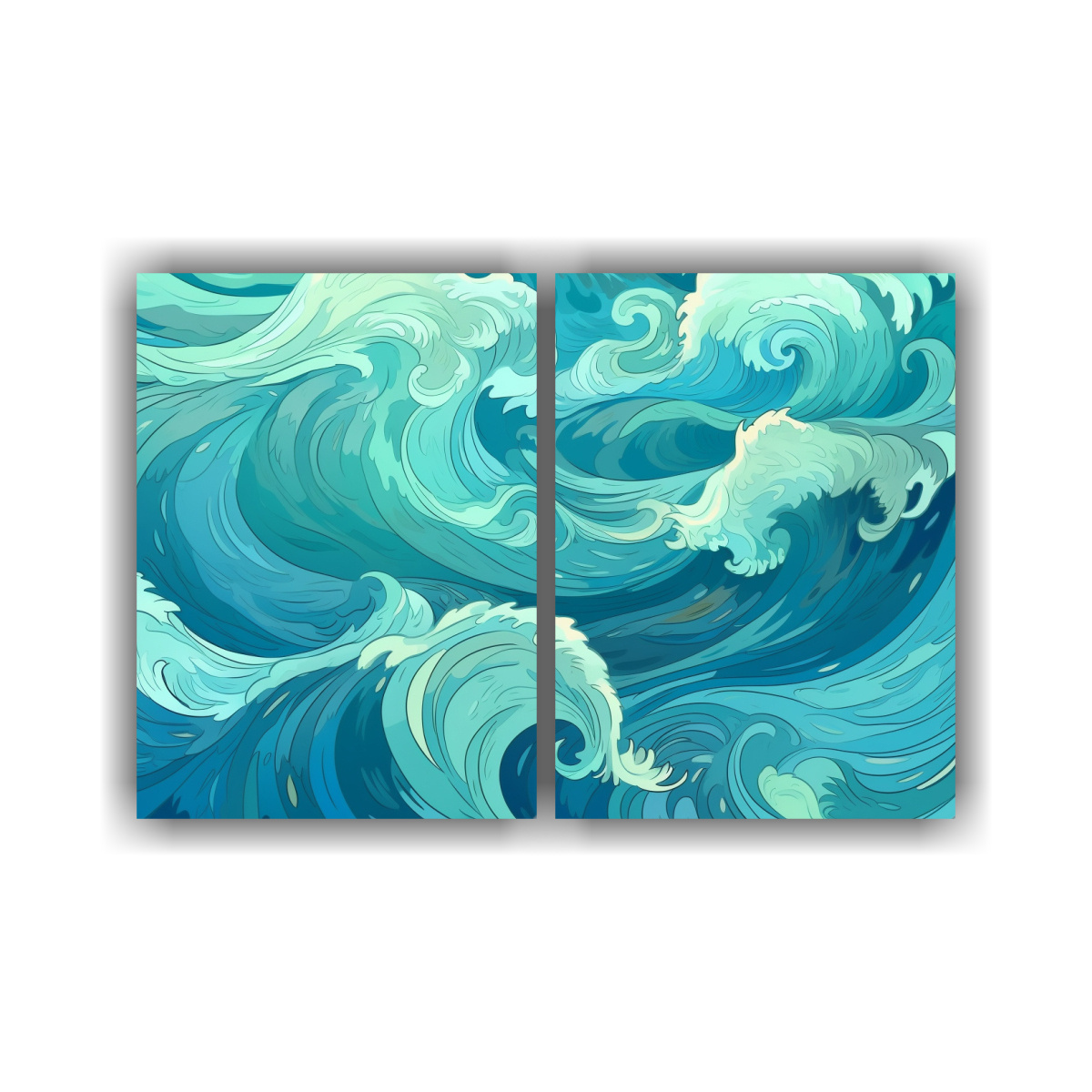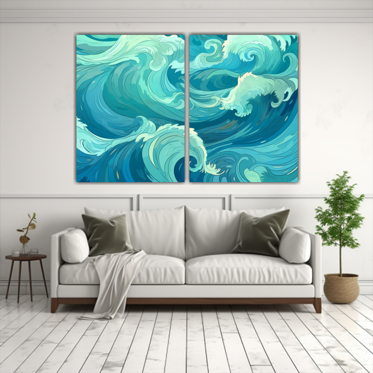 Agrega un toque de tranquilidad a tu sala de estar o dormitorio con este cuadro inspirado en las suaves olas en tonos aqua Eleva la atmósfera de tu hogar colocando este cuadro en la pared opuesta a una ventana para captar la luz natural y crear un ambiente relajante